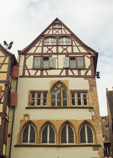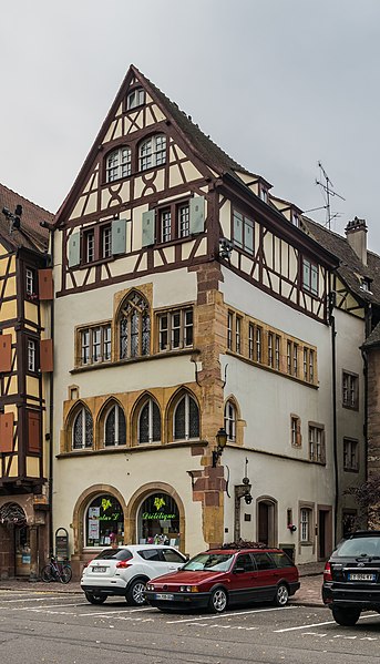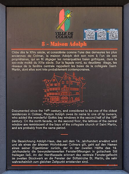 La maison Adolphe est un monument historique situé au 16, place de la Cathédrale à Colmar (Haut-Rhin), ancienne adresse : 4, place des Armes. Longtemps considérée comme la plus ancienne maison de la ville, cette qualification a été nuancée par des analyses dendrochronologiques menées sur d'autres bâtiments colmariens. La maison paraît remonter à la seconde moitié du XIVe siècle, probablement construite vers 1350 ; elle est mentionnée dès 1371. Un puits daté de 1592, surmonté d'une potence ornée de deux têtes de lion, se trouvait au pied de la maison ; il était à l'origine installé rue Mercière (actuelle rue des Marchands). L'édifice a fait l'objet de remaniements aux XVIe, XVIIe et XIXe siècles. Son nom provient d'un propriétaire qui fit dégager les fenêtres gothiques au milieu du XIXe siècle. Les façades et les toitures sont inscrites au titre des monuments historiques depuis le 13 juin 1929. Les baies en arc brisé du XIVe siècle, de style gothique, évoquent celles de la cathédrale toute proche. Le pignon à pan de bois remonte au XVIe siècle. Au premier étage, la façade présente quatre baies surmontées d'ogives à doubles lancettes ; au deuxième étage, une arcade à triple lancette dont l'ogive est ajourée de rosaces. Le troisième étage et le pignon résultent de campagnes de travaux postérieures. L'ensemble témoigne de l'évolution architecturale de la maison du XIVe au XIXe siècle.