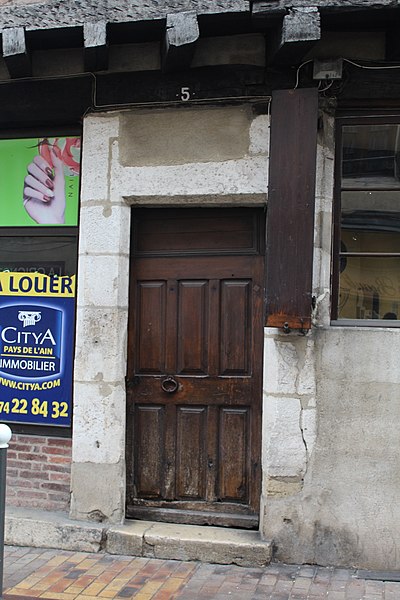 La maison du 5 rue Jules-Migonney, située à Bourg-en-Bresse dans le département de l'Ain, est inscrite au titre des Monuments historiques pour ses façades, ses toitures et son escalier à vis en pierre (inscription du 3 octobre 1983). Des ressources complémentaires sont disponibles, notamment une notice et des illustrations sur Wikimedia Commons, les bases Mérimée et PSS, ainsi que les portails consacrés à l'Ain, à la Bresse et aux monuments historiques.