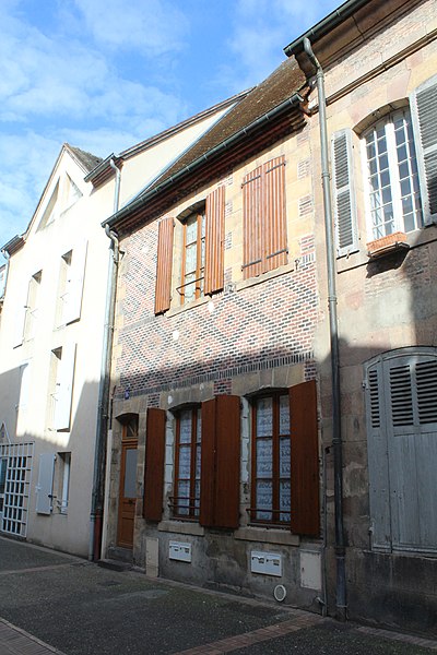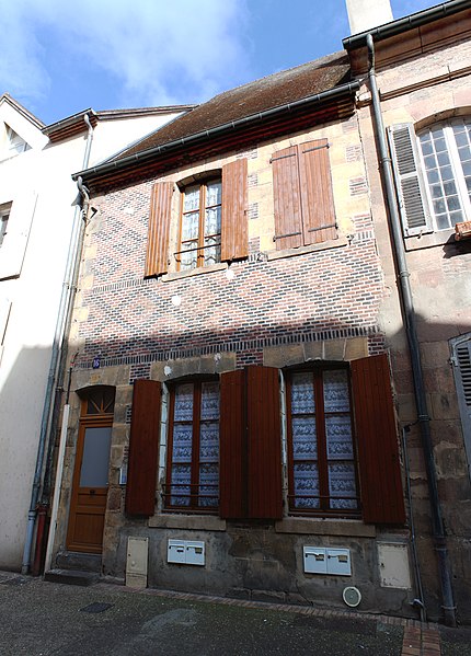 Maison, 16 rue du Pont-Ginguet à Moulins (Allier, Auvergne-Rhône-Alpes). Située dans l'ancien quartier des pêcheurs, elle présente côté jardin une façade du XVe siècle avec une tourelle d'escalier de plan carré. On accède à cette tourelle par une porte surmontée d'un arc brisé à contrecourbe, flanquée de pinacles reposant sur des culots sculptés. La façade sur rue est en briques noires et rouges, avec chaînes d'angles et encadrements en pierre de taille, sans doute du XVIIIe siècle. Il est probable que la maison représentait l'autorité ducale dans le quartier : les armes du duc de Bourbon ornent l'écusson apposé sur la porte donnant sur le jardin. La maison est partiellement inscrite au titre des monuments historiques par arrêté du 30 mai 1978 ; sont protégés la façade et la toiture sur jardin.