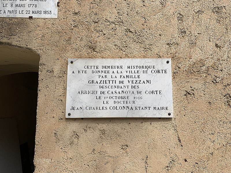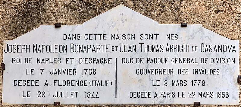 La maison a été reconstruite après un incendie en 1760. En 1768, le père de Napoléon Ier y a habité et Joseph, son frère aîné, y naquit le 7 janvier de la même année. L'entrée latérale est précédée d'un perron de deux marches. L'escalier, tournant et adossé à un mur d'échiffre plein, comporte des paliers voûtés d'arêtes plates. L'appartement intérieur est divisé en quatre pièces et une cuisine.
