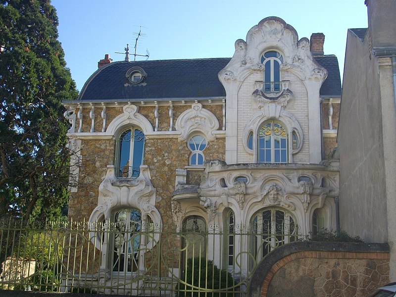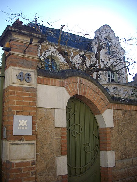 La maison associe une structure traditionnelle à un foisonnement d'ornements d'inspiration Art Nouveau. Trois travées irrégulières organisent la façade, qui reste marquée par une profonde asymétrie de volumes et un fort contraste entre les matériaux : meulière en parement, brique de la lucarne passante, pierre de taille pour les ornements et ardoises pour la couverture. Aucune baie n'est identique à une autre. La baie du premier niveau, à gauche de la porte, réinterprète le motif célèbre de la porte imaginée par Guimard au Castel Béranger. Les menuiseries du premier niveau présentent un motif japonisant de courbes et contre-courbes, motif qu'on ne retrouve pas aux niveaux supérieurs. Le chardon se répète à plusieurs endroits du décor. Un masque de sirène émergent d'algues orne le balcon, accompagné de motifs évoquant des stalactites ou des filets d'eau qui tombent du balcon ou s'échappent sous les appuis des fenêtres, accentuant les vagues ondoyantes parcourant l'ensemble. Des aisseliers à volutes, reposant sur une corniche rectiligne peu saillante, soutiennent la gouttière du toit bombé de ce côté, lequel est percé d'un oculus.