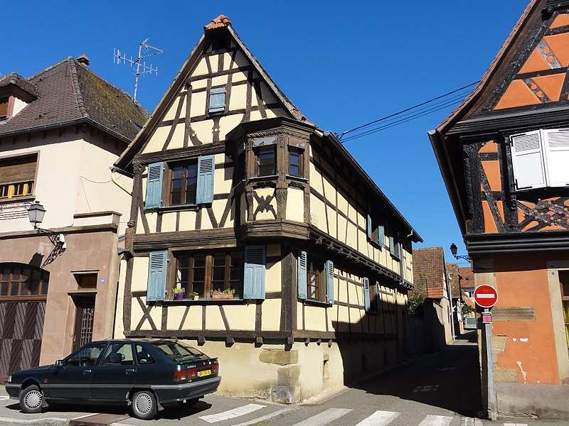La maison située au 1, rue des Violettes à Rosheim (Bas-Rhin) est inscrite au titre des monuments historiques depuis 1930. Sur son poteau cornier figure la date 1628 accompagnée des initiales Ch d ah. Les bâtiments annexes ont subi quelques transformations récentes. Des informations et des illustrations sont consultables sur Wikimedia Commons et via les portails du Bas-Rhin et des monuments historiques, ainsi que dans les listes des monuments historiques de Rosheim et du Bas-Rhin.