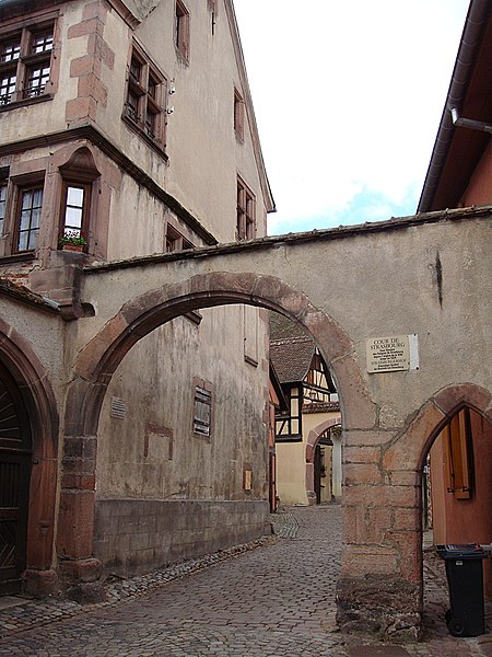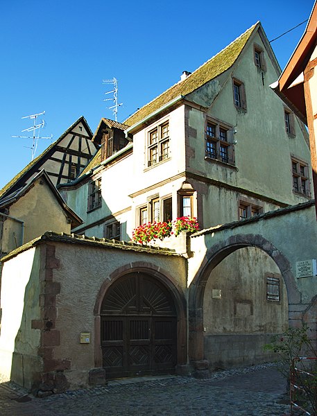 La maison, située au 16 rue de la Première-Armée à Riquewihr (Haut-Rhin), est un monument historique inscrit depuis 1930. Elle a été construite en 1566 pour Claus Flach, date qui apparaît sur plusieurs éléments du bâti : la porte du cellier (accompagnée d'initiales), l'oriel, la porte de la tourelle (portant initiales et armoiries) et une fenêtre. La porte charretière de la cour porte pour sa part la date de 1560. Autrefois appelée « Au Bouton d'or » (en allemand Zum goldenen Knopf), la maison conservait jusqu'au XXe siècle de nombreuses inscriptions du XVIe siècle rédigées en allemand. Ces inscriptions ont été transcrites par F. Zeyer et sont conservées dans le fonds Zeyer (7 FZ 6).
