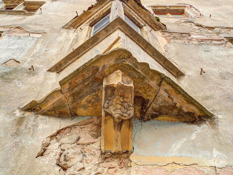 Sa façade sur rue comporte un oriel au premier étage, muni d'une échauguette triangulaire à base et à corniche moulurée.