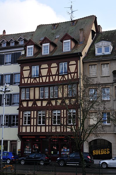 La maison située au 36, quai des Bateliers à Strasbourg (Bas-Rhin) est inscrite au titre des monuments historiques depuis 1937. En 1587 elle appartenait à Ambrosius Gilg, membre du Grand Sénat et représentant de la tribu de la Fleur (bouchers) de 1588 à 1597 ; il la louait alors à Julius Sopher, responsable de la balance de la douane. Le plan-relief de 1725 montre un bâtiment à gouttereau sur rue avec, au-dessus du rez-de-chaussée, trois étages carrés de quatre travées. Sur le plan Blondel de 1766, la maison apparaît composée de deux corps séparés par une cour quadrangulaire. Dans la seconde moitié du XVIIIe siècle, elle appartient au batelier Caspar Häss (décédé en 1788) et est décrite comme comprenant « un bâtiment antérieur et un bâtiment arrière, une cour, un puits et des dépendances ». Un plan-relief du XIXe siècle indique que les deux corps étaient alors reliés par des ailes étroites bordant la cour. En 1900 une boulangerie s’installe dans l’immeuble principal : le rez-de-chaussée est aménagé selon un projet de l’entrepreneur "Witwe Louis Greiner und Friedrich Peter", avec démolition de cloisons anciennes, pose de nouvelles cloisons et création de la devanture actuelle. Lors du bombardement aérien du 25 septembre 1944, l’immeuble sur rue est touché — les appartements sont « fortement endommagés » — et le bâtiment arrière est détruit ; à cette époque disparaissent aussi les coursières qui bordaient la cour, connues par une photographie ancienne. Cette photographie montre le bâtiment arrière, composé d’un rez-de-chaussée et de deux étages carrés : le rez-de-chaussée présentait une arcade moulurée avec congés de type Renaissance, le premier étage, en maçonnerie, des fenêtres à chambranle orné attribuées à la même époque (XVIe siècle ou début du XVIIe siècle), et le deuxième étage, en pan de bois, de caractère très simple et sans décor (XVIIIe siècle ?). Les coursières du côté sud‑ouest, disposées sur deux niveaux avec des balustres tournés de type maigre, pourraient dater de la fin du XVIIIe siècle ou du début du XIXe siècle ; le plan Blondel suggère en tout cas que ces bâtiments de liaison n’existaient pas encore en 1766. En 1977 la boulangerie du bâtiment principal était toujours en activité ; depuis cette période, un magasin d’objets de décoration s’y est installé.