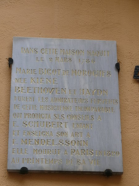 La maison située au 48, rue des Marchands à Colmar (Haut-Rhin) a été édifiée en 1545 et a subi des transformations ultérieures. Elle est la maison natale de Marie Bigot (née en 1786), issue d'une famille de musiciens. La porte de l'édifice est inscrite au titre des monuments historiques depuis le 6 janvier 1930. L'arc de cette porte présente une géométrie originale ornée de bas-reliefs.