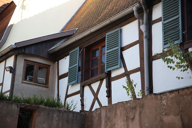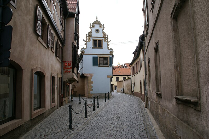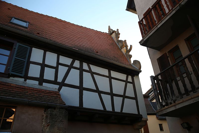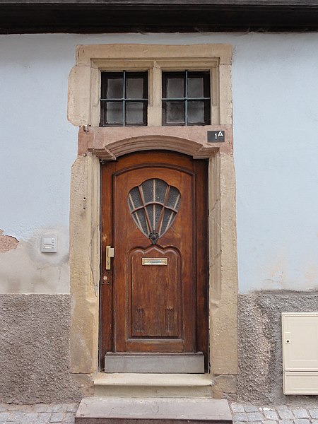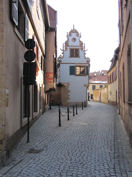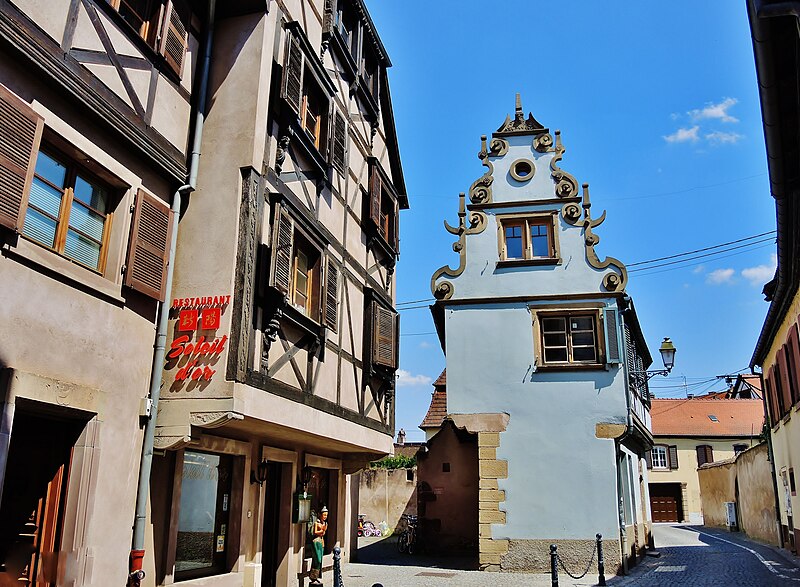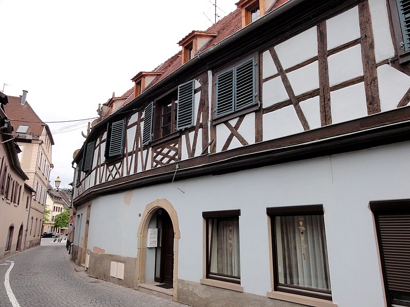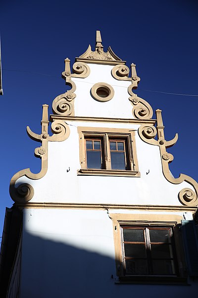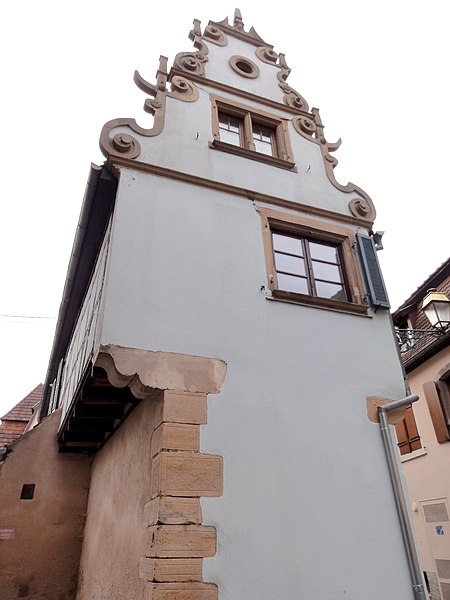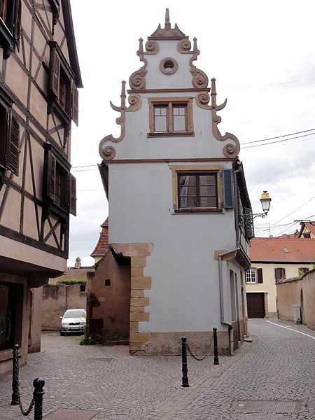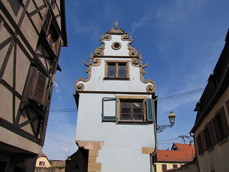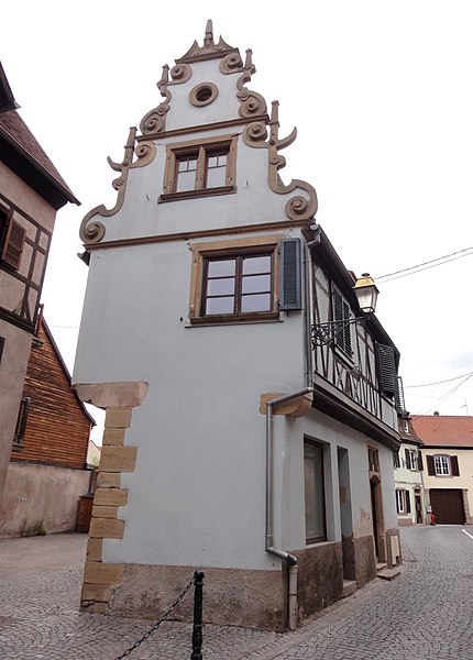 La maison située 1a-1b, rue de l'Église à Molsheim (Bas-Rhin) présente un pignon à volutes et obélisques très restauré, ainsi qu'une porte et un pan de bois de style Renaissance; sa construction remonterait probablement au premier quart du XVIIe siècle. Le pignon est proche de celui de la maison du 15, rue de Strasbourg, datée de 1618, ainsi que du corps de logis des jésuites datant des premières années du XVIIe siècle. Certaines fenêtres ont vu leur largeur remaniée et la plupart ont été agrandies en hauteur; celles du rez-de-chaussée sont modernes. À l'angle d'un décrochement postérieur subsiste un vestige de maçonnerie qui pourrait être médiéval. En 1783, la municipalité mit la maison à la disposition d'une congrégation fondée sur place par le père Louis Kremp et la couturière Madeleine Ehrhardt; cette congrégation, dédiée à l'instruction gratuite des filles, prit plus tard le nom de « Sœurs de la Divine Providence », puis, à partir des années 1820, « de Ribeauvillé ». Le bâtiment accueilla ainsi leur première école destinée en particulier aux filles de la campagne. L'édifice est inscrit au titre des monuments historiques depuis 1930.