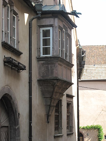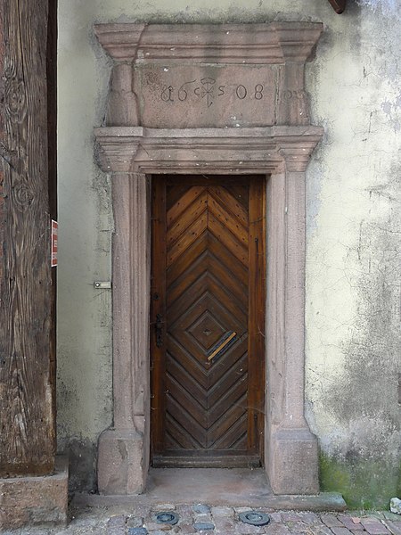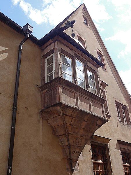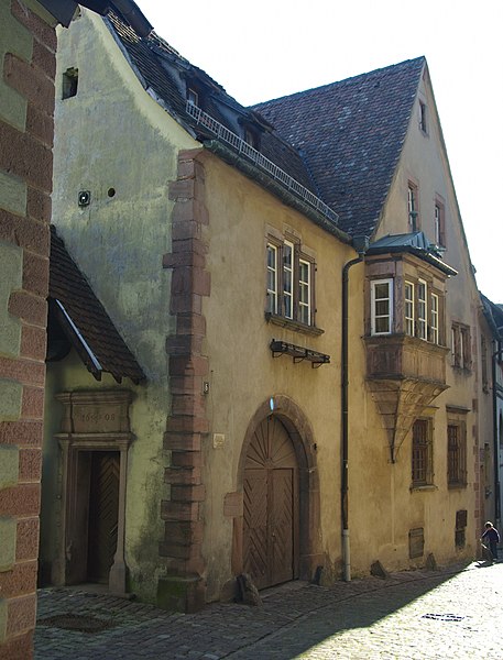 La maison située au 6, rue Latérale à Riquewihr est un édifice composé de trois corps de bâtiments — un corps de passage, le logis et le bâtiment est — datés de 1551, date portée sur la logette du logis et sur le soupirail du bâtiment est. Ces parties ont été réalisées par le maçon Muntschi Deutsch, dont la marque figure sur la logette et correspond à celle sculptée sur sa propre maison au n°4 de la même rue. La fenêtre en triplet du corps de passage est identique à celle de la logette et à celle de la maison de Muntschi Deutsch. Sur la logette et sur la porte murée du bâtiment est apparaissent également la marque du maître d'ouvrage, non identifié, et l'une de ses initiales encore lisible (T). La porte d'entrée du logis, ornée de bustes de femmes, date probablement du premier tiers du XVIIe siècle et pourrait être l'œuvre du même sculpteur que la porte similaire de l'hôtel rue Corberon à Colmar ; les têtes, abîmées pendant la Révolution, ont été refaites par le sculpteur Roth. Sous le corps de passage se trouve une porte datée 1608, réalisée pour le tonnelier Caspar Schmidt, qui provient de la maison 6 bis rue Latérale. La cour a été agrandie, des dépendances ont été détruites puis reconstruites, et le puits anciennement situé dans la cour a été déplacé au 25, rue Saint-Nicolas. L'ensemble de la propriété est occupé par l'exploitation viticole Hugel. Le bâtiment fait l'objet d'une inscription au titre des monuments historiques depuis 1930.