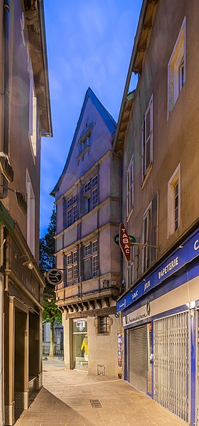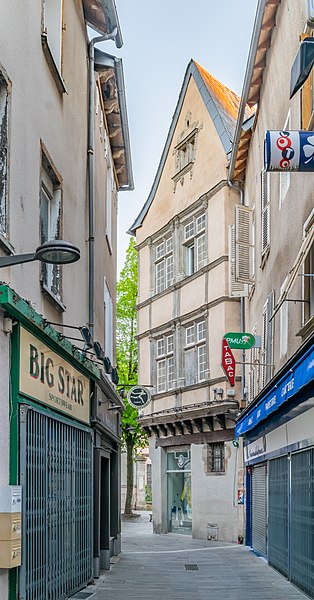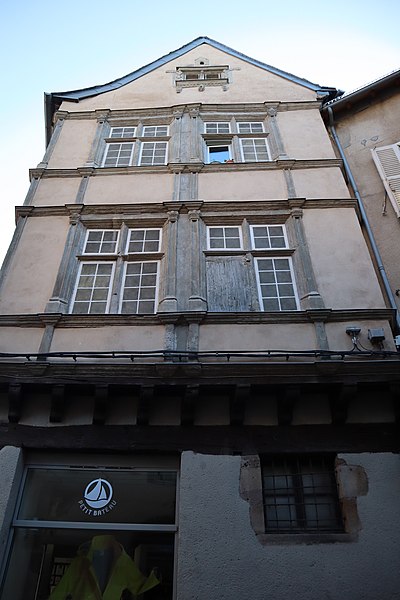 La maison présente un rez-de-chaussée en maçonnerie surmonté de deux étages à pans de bois en encorbellement. Au sommet, la façade est pourvue d'une lucarne ouvragée.