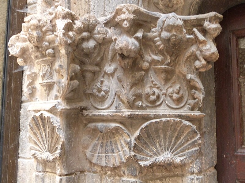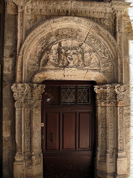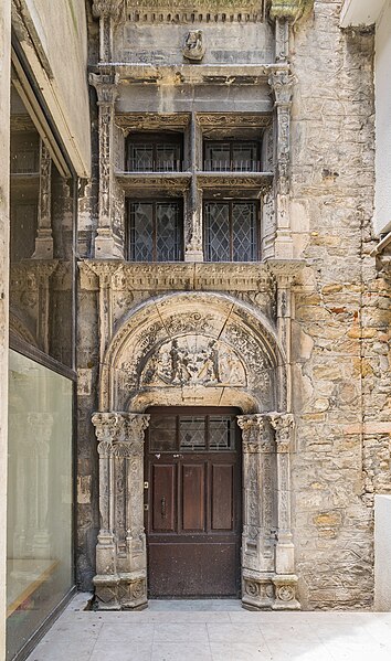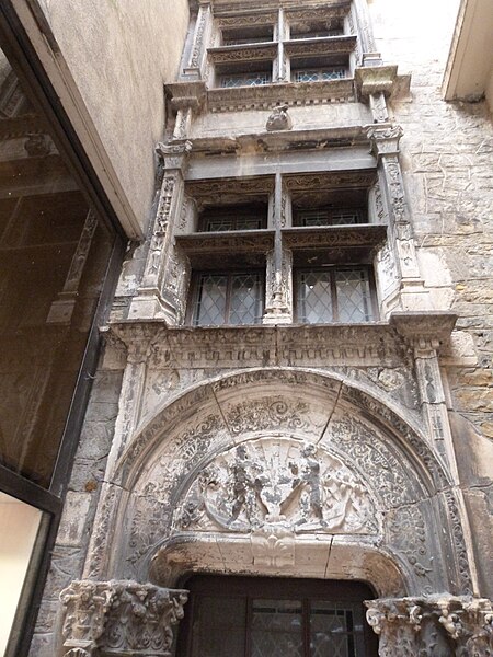 L'immeuble se compose de deux maisons séparées par une cour au fond de laquelle s'élève une tour carrée abritant un escalier à noyau. Les façades sur rue sont reliées, au niveau du rez-de-chaussée, par un mur percé de l'entrée principale donnant accès à la cour. La tour, datée du XVIe siècle, présente une porte surmontée d'une fenêtre à croisillons et décorée de pilastres ornés d'arabesques ; elle témoigne de la rénovation architecturale du XVIe siècle dans le Rouergue. L'influence du XVe siècle demeure visible dans les bases des piédroits et dans l'interruption de l'archivolte par les pilastres latéraux. Quatre fenêtres non sculptées éclairent les révolutions de l'escalier ; la dernière est couronnée d'un arc plein cintre avec accolade, flanqué de deux pinacles entre lesquels sont sculptées des armoiries. La tour porte un dernier étage crénelé, reposant sur des mâchicoulis destinés à défendre l'accès de l'escalier. La cage d'escalier pourrait dater du deuxième quart du XVIe siècle.