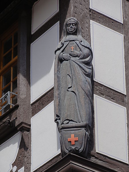 Adjonction de la statue d'abbesse.
