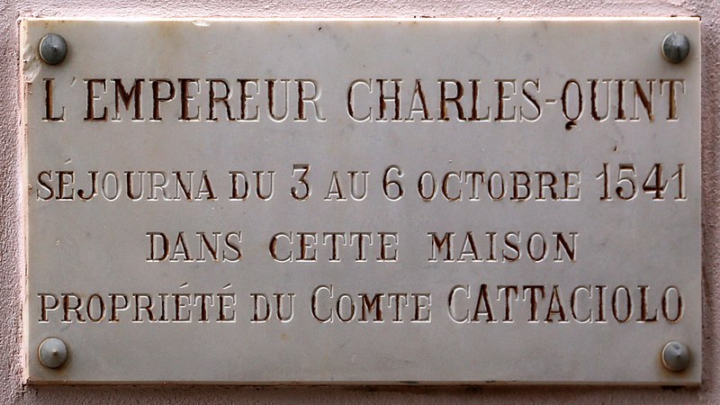 La maison s'ouvre sur une porte du début du XVIe siècle, dont le chambranle a très certainement été sculpté à Gênes. Les montants présentent, à l'angle, une petite torsade ; deux consoles moulurées soutiennent le linteau sculpté. Ce linteau réunit un chrisme couronné, deux vases d'où sortent des rinceaux encadrant deux initiales en majuscule gothique, et, aux extrémités, deux blasons au lion rampant entourés de riches lambrequins, timbrés d'un heaume surmonté d'une gracieuse figurine d'anges. Charles Quint aurait logé dans cette maison en 1541.