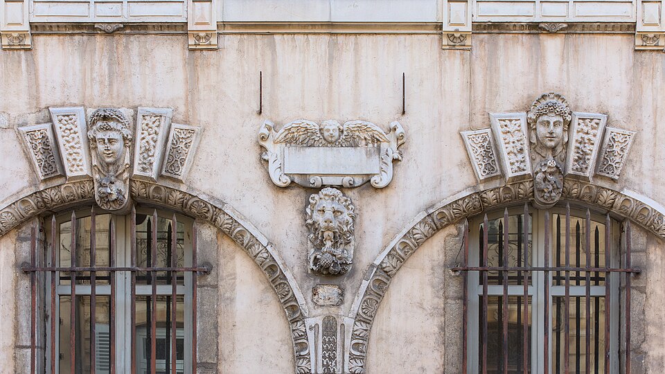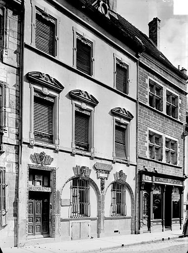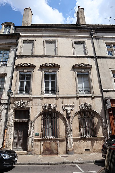 L'édifice est peut‑être plus ancien que ne le laisse supposer son décor de façade, qui, par son style, se rattache à la limite des XVIe et XVIIe siècles. La datation possible de l'escalier ouvert en bois concorde avec cette période, même si le principe de distribution — deux corps de logis reliés par une galerie — apparaît archaïsant. Bien que n'ayant qu'un seul côté sur rue, le fonds comporte néanmoins deux cours. La façade sur rue a été remaniée à plusieurs reprises, notamment dans sa partie supérieure en 1855.