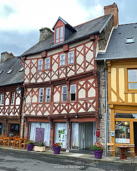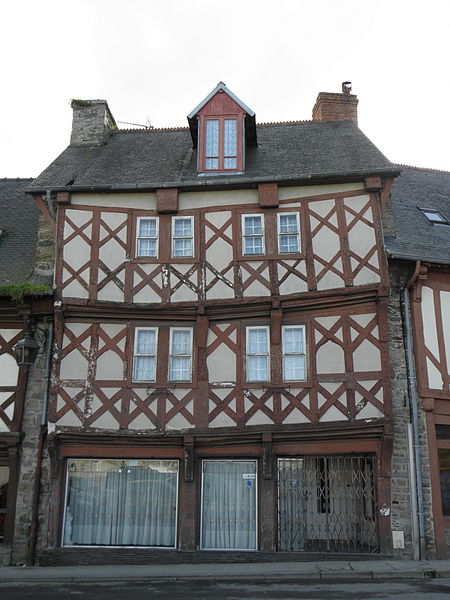Maison à pans de bois à étages en avancée, appuyée sur deux murs latéraux. Les deux étages en surplomb, chacun percé de deux petites fenêtres, dominent un rez-de-chaussée bas. Sur l'axe de la toiture se dresse une haute gerbière, à l'extrémité de laquelle a été ajoutée une petite pièce en pointe. Il s'agit d'une maison d'artisan-marchand, édifiée à la fin du XVe siècle en haut de la rue Renan. La distribution intérieure est partiellement conservée : le mur de refend subsiste, mais l'escalier a été refait au XIXe siècle et les cheminées remaniées. Le volume de la boutique sur rue a été transformé par la suppression d'une partie du plancher qui l'isole du sous-sol. Les petites baies de la façade en pans de bois ont été obturées aux XVIe ou XVIIe siècles et remplacées par des demi-croisées jumelées au centre de la façade.