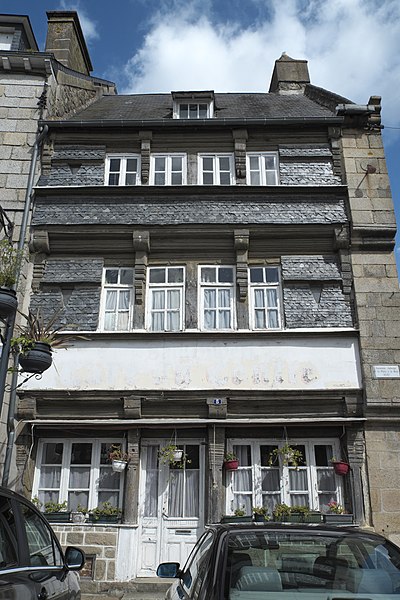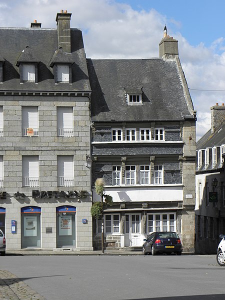 La maison située au 5, place 1830 à Quintin (Côtes-d'Armor, Bretagne) occupe l'angle de la place 1830 et de la rue Émile-Nau. L'édifice présente un plan approximativement carré. Ses murs sont en pans de bois avec lattis recouverts d'ardoises, et le pignon est renforcé par un chaînage en granit. Le premier étage est pourvu de fenêtres à meneaux verticaux en bois ; le deuxième étage, de type attique, est également percé de fenêtres à meneaux verticaux. Quintin a été érigée en duché en 1691 et conserve des édifices des XVIe et XVIIe siècles. La maison est partiellement protégée au titre des monuments historiques : façades et toitures avec retour sur la rue Émile-Nau, par arrêté du 21 décembre 1977. Des références et ressources en ligne, notamment la base Mérimée et les portails consacrés aux Côtes-d'Armor et aux monuments historiques français, fournissent des informations complémentaires.