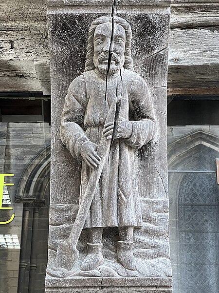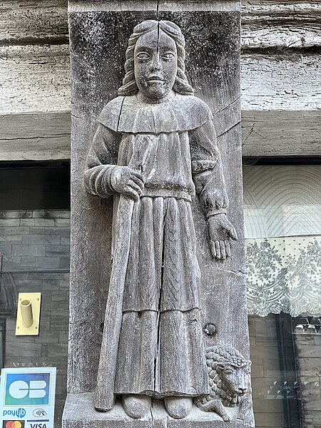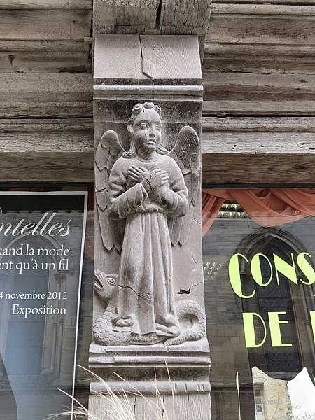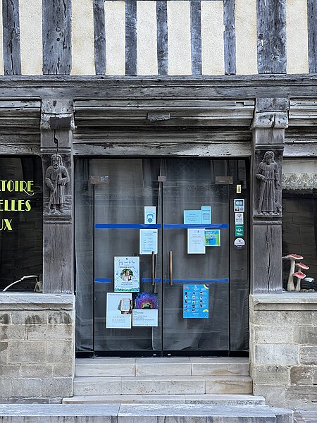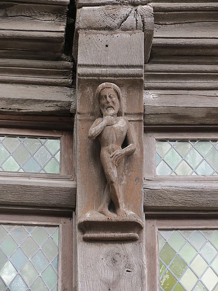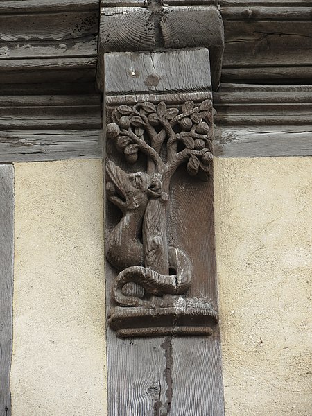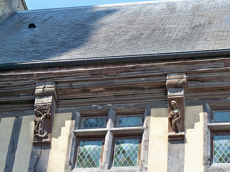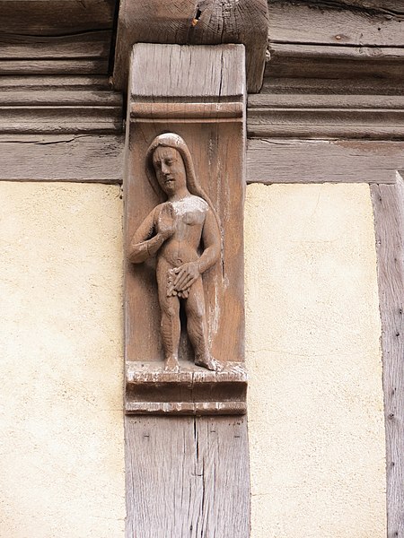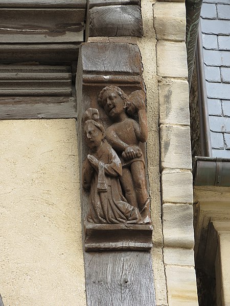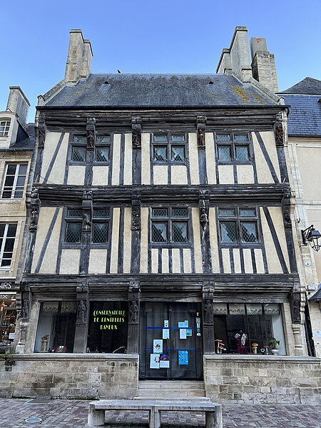 La maison d'Adam et Ève est située au 6, rue Bienvenue, dans le centre-ville de Bayeux (Calvados, Normandie). Elle est traditionnellement datée du XVe siècle et construite en pan de bois ; elle se compose de deux corps de bâtiment, l'arrière, visible depuis la rue de la Juridiction, datant vraisemblablement du XVIe siècle. Elle tient son nom des deux statuettes représentant Adam et Ève, qui illustrent le thème du péché originel. À l'origine maison canoniale, elle est devenue par la suite la propriété de marchands et, selon Claire Merlier, guide de l'office de tourisme, abritait deux échoppes : une boutique de souvenirs liés à la cathédrale et un commerce alimentaire, du fait de la proximité de la rue des cuisiniers. Le corps principal a été inscrit et classé au titre des monuments historiques en 1927 et 1956 ; le second corps a été inscrit en 1972. Le décor du rez-de-chaussée et le second corps ont fait l'objet d'une restauration en 1976. La façade sur rue repose sur un soubassement en pierre et s'élève en pan de bois, ornée d'un décor sculpté dont un groupe central au deuxième étage représentant Adam et Ève et le serpent enroulé sur l'arbre de la connaissance. La façade sur cour est en pierre et comprend une tourelle d'escalier à vis ; le second corps, de style Renaissance, est également en pierre et comporte une tourelle d'escalier à vis. Les corbeaux soutenant les encorbellements sont décorés de statuettes. Voir aussi la liste des monuments historiques de Bayeux, la dentelle de Bayeux et les portails consacrés aux monuments historiques français et au Calvados.