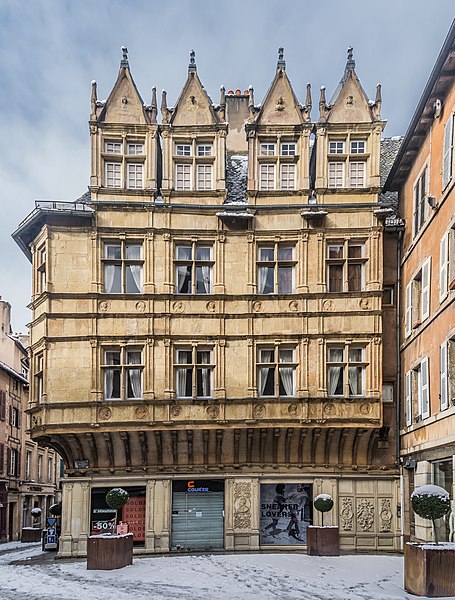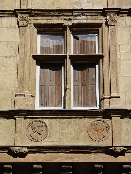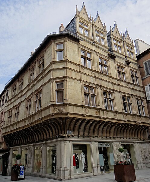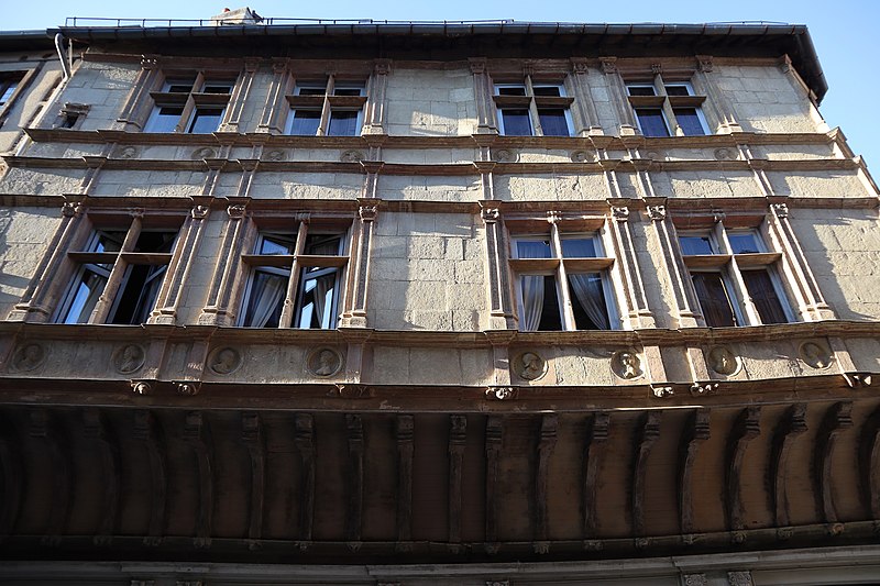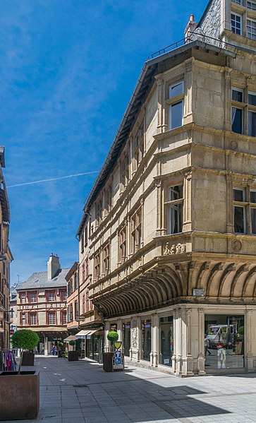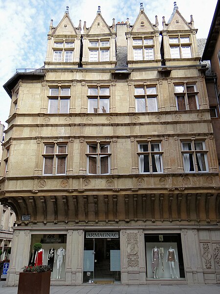 La Maison d'Armagnac, située 4 place de l'Olmet à Rodez, est un hôtel particulier érigé sur l'emplacement de l'ancien château des comtes d'Armagnac, d'où son nom. Ses formes architecturales et ornementales indiquent une édification au second quart du XVIe siècle : le motif du médaillon et le fin pilastre orné de rinceaux et de candélabres semblent renvoyer à la clôture de chœur de la cathédrale datée vers 1529-1531. L'édifice reprend l'emprise d'une demeure antérieure : Géraud Daulhou avait hérité d'une maison constituée par le rassemblement de deux maisons médiévales au milieu du XVe siècle, et la maison figure sur le plan du Bourg de 1495 sous son nom. Le livre d'estime du Bourg de 1497 mentionne l'enseigne de l'hôtellerie du Jésus, propriété des Daulhou, et signale un bâtiment voisin dont ils n'étaient pas propriétaires. À la fin du XVe siècle la demeure est décrite comme un "ostal" allivré pour 7 deniers ; le rez-de-chaussée abritait des boutiques et les deux étages servaient d'habitat, distribution qui se rapproche de celle de la maison Renaissance actuelle. La réédification dans un style inspiré de l'antique est l'œuvre du fils, Hugues II Daulhou, qui connaît une importante ascension sociale au début du XVIe siècle : il est qualifié de bourgeois de Rodez en 1520 et apparaît comme seigneur de la Combe et de la Roquette la même année. Le chantier est achevé en 1546, date à laquelle Hugues II teste en faveur de son petit-fils François en lui léguant notamment la maison de la place de l'Olmet. Une sculpture porte la date de 1531, ce qui a conduit certains auteurs à proposer un achèvement entre 1525 et 1531, tandis que l'ensemble stylistique situe l'édifice dans le second quart du XVIe siècle. Au XIXe siècle la maison a attiré l'attention des artistes et des antiquaires : F.-A. Pernot l'a dessinée pour l'album de lithographies "Sites et Monumens du département de l'Aveyron" paru en 1838. En 1857 l'architecte Loirette fit réaliser un décor de menuiseries de style néo‑Renaissance pour le rez-de-chaussée, dont le décor sculpté fut exécuté par le jeune François Mahoux. La maison fut partiellement classée au titre des monuments historiques en 1862 pour le magasin, la tour et l'escalier. Par la suite, la demeure entra dans la famille de Bandinel par le mariage d'Anne d'Aulhon avec Pierre de Bandinel, puis Louis de Bandinel la vendit en 1623 au marchand Raymond Durif. Il s'agit de l'une des plus anciennes maisons de la ville de Rodez.