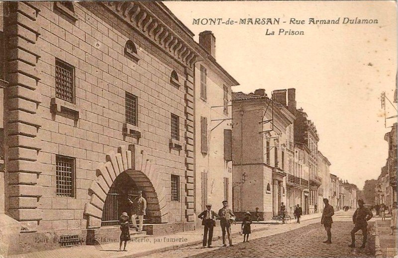 L'ancienne prison de Mont-de-Marsan se situe au 4 rue Armand-Dulamon, dans le centre-ville. Elle fait partie d'un ensemble néo-classique aménagé au XIXe siècle par l'ingénieur David-François Panay, qui a réalisé la partie Est entre 1807 et 1809, tandis que la partie Ouest a été édifiée par Arthaud entre 1820 et 1823. Selon certaines sources, la construction s'achève en 1809. La partie Est, qui abrite le pavillon d'entrée, présente une façade renforcée aux angles par de massives chaînes en fort bossage et couronnée d'une corniche très débordante. Au rez-de-chaussée, une baie à arc segmentaire composée de claveaux en fort bossage, flanquée de deux fenêtres grillagées, donne accès à une porte en bois épaisse encadrée de gros anneaux de fer, surmontée de deux sommiers et d'une clé. L'aspect de la partie Ouest est plus sobre : au rez-de-chaussée trois baies aveugles à sommet cintré sont soulignées par un bandeau horizontal au niveau des impostes, et une corniche sépare ce niveau du premier étage percé de trois fenêtres rectangulaires. La prison a été construite sur l'emplacement de l'ancien couvent des Ursulines, dans le prolongement de la caserne de gendarmerie, et sa façade s'inspire des cachots de Piranèse et des ergastules antiques, adoptant une austérité en rapport avec la politique répressive du Premier Empire. Le préfet Jean-Marie Valentin-Duplantier a vanté ses qualités fonctionnelles — sûreté, infirmerie évitant les transferts vers l'hôpital et chemin de ronde facilitant la surveillance — et a estimé que l'entrée monumentale devait inspirer crainte et respect, même si ce caractère sévère a d'abord suscité des protestations des riverains, la rue étant bordée de demeures bourgeoises comme l'hôtel Brettes ou la maison Dupeyré. La maison d'arrêt a fonctionné pendant près de deux siècles et a été le lieu d'exécutions publiques : Bernard-Louis Bordes dit Petit-Louis a été exécuté devant la prison le 12 juillet 1923, et l'assassin Étienne Bordus a été le dernier supplicié en public dans les Landes le 24 janvier 1931. Pendant la Seconde Guerre mondiale, après l'occupation de la ville le 27 juin 1940, une partie de l'établissement a été réquisitionnée par les autorités allemandes pour la détention de Juifs arrêtés dans la région ; les enfants de moins de 16 ans furent séparés et internés à l'hôpital Lesbazeilles. Entre la fin de 1940 et la fin de 1942, environ 230 Juifs ont été internés dans la « section allemande » avant d'être transférés vers Bayonne, Dax puis, à partir du 29 juillet 1942, vers le camp de Mérignac ; après l'occupation de la zone libre, ces détenus y ont souvent séjourné brièvement avant d'être envoyés vers Bordeaux. Lors de la rafle du 11 janvier 1944, des personnes arrêtées à Mont-de-Marsan ont été incarcérées brièvement dans la maison d'arrêt, puis transférées à Bordeaux et au camp de Drancy le 12 janvier, d'où elles ont été déportées à Auschwitz le 3 février 1944 par le convoi n° 67. Le 13 juin 1944, trente et un otages arrêtés à Grenade-sur-l'Adour furent détenus et interrogés à la prison ; un fut libéré le lendemain, sept le 16 juin, vingt-trois furent transférés le 21 juin au fort du Hâ à Bordeaux, et dix-huit d'entre eux furent ensuite déportés au camp de concentration de Dachau, onze y trouvant la mort. Après la libération de Mont-de-Marsan le 21 août 1944, des personnes suspectées de collaboration ont d'abord été internées à la maison d'arrêt avant d'être transférées au lycée Victor-Duruy puis dans un camp aménagé le long de la route de Bayonne. René Discazeaux a été le dernier condamné du département à être décapité dans la cour intérieure de la prison le 17 juin 1947. Désaffectée en 2008 lors de l'ouverture du nouveau centre pénitentiaire de Mont-de-Marsan, l'ancienne maison d'arrêt a été réhabilitée en résidence nommée « Cœur de Ville » en 2019 ; seule la façade d'origine classée a été conservée. La partie gauche de la façade est inscrite aux monuments historiques par arrêté du 22 décembre 1987, la partie droite de la façade d'entrée et la toiture attenante sont classées par arrêté du 10 avril 1990, et le porche de la partie droite, avec son escalier d'accès et sa porte, est inscrit par arrêté du 28 décembre 2010 ; il s'agit du seul monument classé de Mont-de-Marsan.