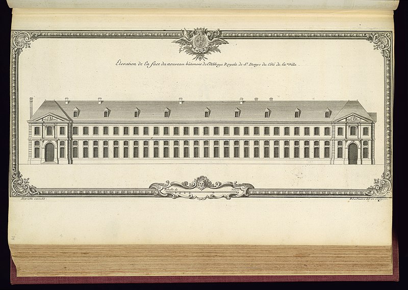 Les bâtiments abbatiaux qui s'élèvent au flanc sud de l'église occupent l'emplacement de l'abbaye médiévale qu'ils ont remplacée, à l'exception de deux travées voûtées d'ogives dans le soubassement de l'extrémité de l'aile orientale. Les travaux, engagés en 1700 et poursuivis tout au long du XVIIIe siècle, ont été conduits d'après des dessins de Robert de Cotte conservés au Cabinet des Estampes et aux Archives nationales. La galerie nord et l'infirmerie ne furent achevées qu'après 1765, ainsi que le bâtiment renfermant l'hôtellerie et l'appartement du roi. L'ensemble a conservé le caractère de ses espaces monastiques : cloître, réfectoire et salle du chapitre gardent leur physionomie d'origine. L'intérieur présente de belles rampes d'escalier du XVIIIe siècle attribuées au religieux connu sous le nom de frère Denis. La seule adjonction du XIXe siècle est une salle des fêtes élevée au bas du parterre. Transformée en hôpital pendant la Révolution, l'abbaye fut affectée en 1809 par Napoléon Ier à la Légion d'honneur pour l'établissement d'une maison d'éducation. Saint-Denis fut inaugurée le 1er juillet 1811, inspectée par l'Empereur et accueillit ses premières élèves en 1812. Durant la Première Guerre mondiale, une bombe lancée d'un avion allemand explosa sur la maison le 30 janvier 1918. La maison et son parc ont été classés au titre des monuments historiques le 19 juin 1927. Le réfectoire conserve un grand tableau de Gaspard de Crayer, Le Martyre de saint Denis, saint Éleuthère et saint Rustique, classé au titre des objets le 19 juin 1906 et provenant autrefois du maître-autel du chœur d'hiver de la basilique. Aujourd'hui le cloître de l'ancienne abbaye abrite la maison d'éducation de la Légion d'honneur ; le site, fermé au public, se visite exceptionnellement lors des Journées du patrimoine et est parfois utilisé pour des tournages.