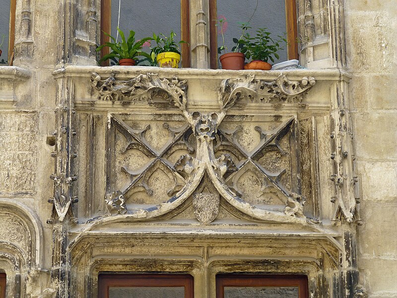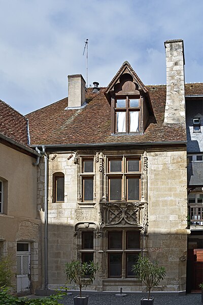 Cette maison appartenait à Bienaimé Georges, maître d'hôtel de Jeanne de France et échevin. Il surveilla la construction du couvent de l'Annonciade et fit édifier cette demeure, qui porte la date de 1494. Il subsiste un fragment de façade gothique où, au rez-de-chaussée et au premier étage, sont accolées une grande et une petite ouverture. Ces baies sont ornées d'un arc en accolade garni de crochets et prolongé par deux tiges de chardon, auquel s'ajoutent des quadrilobes de style flamboyant. Deux culs-de-lampe du premier étage sont sculptés d'un personnage.