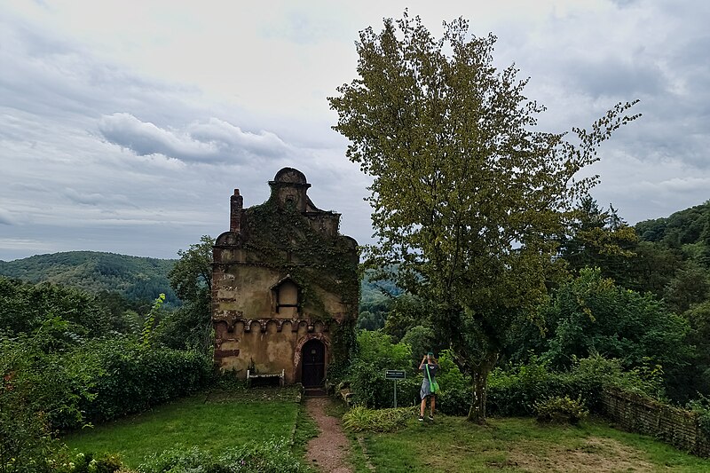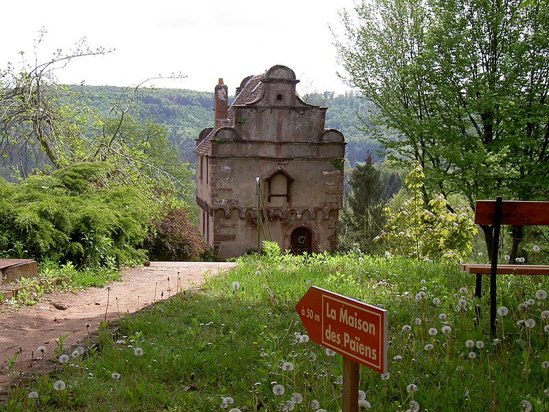 Ancienne maison de garde — la Heidenturm, dite tour des Païens, est située au 24, rue Principale à La Petite‑Pierre (Bas‑Rhin), à l'arrière de la mairie. Construite en 1534 à l'initiative du comte palatin Louis V, comme l'indique la date gravée sur l'encadrement de la porte, elle occupe l'emplacement d'une ancienne tour de guet romaine dont les fondations restent visibles dans la cave. Érigée sur un promontoire rocheux dominant les forêts des Vosges du Nord, la bâtisse remplissait une fonction d'observation et contrôlait d'anciens axes de circulation, notamment la route du sel qui, au Moyen Âge, assurait la liaison entre les bourgs de plaine et l'Alsace bossue en empruntant le col de la Petite‑Pierre. De style Renaissance, l'édifice mêle des traits d'architecture militaire et civile ; la recherche décorative de ses deux pignons illustre cette hybridité et confère au monument un caractère singulier en Alsace. Inscrite au titre des monuments historiques depuis 1934, la maison a été la résidence estivale du peintre Luc Hueber et accueille aujourd'hui des expositions, dont les collections De Laforêt de Christian et Dominique Débat. À l'arrière du bâtiment, le jardin des Païens, en terrasses, offre une vue panoramique sur la forêt ; l'Association des Amis du Jardin anime le lieu en été et invite régulièrement des artistes contemporains, parmi lesquels Didier Guth, Jérémy Couvez et Denis Lavoyer. Le jardin accueille également des scènes « off » du festival de jazz de La Petite‑Pierre. La galerie des Païens, située derrière la mairie, présente des créations d'ateliers d'art en céramique et en verre.