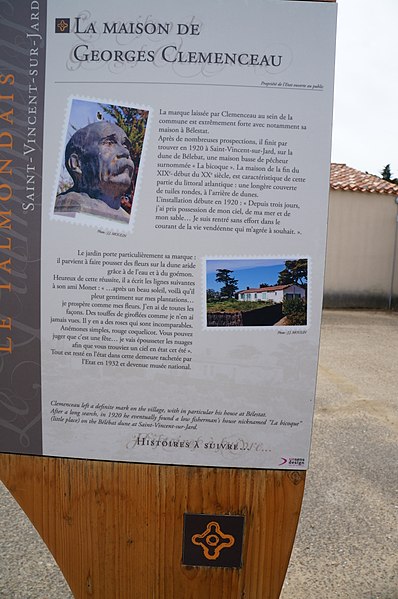 La maison et les jardins de Georges Clemenceau sont une maison de campagne vendéenne, située au lieu-dit Bélesbat (Belébat) à Saint-Vincent-sur-Jard, en bordure de l'océan Atlantique. Propriété célèbre pour avoir appartenu à Georges Clemenceau de 1919 à 1929, le site est classé monument historique depuis le 10 juillet 1970 et labellisé Maison des Illustres depuis 2011. Il s'agit d'une longère traditionnelle, ancienne maison de pêcheur de cinq pièces, peinte en blanc avec volets turquoise, toiture en tuiles romaines et terrasse donnant sur un vaste jardin et la plage. La maison est installée sur une dune face à l'océan, à proximité de la plage du Goulet, à 20 km au sud-est des Sables-d'Olonne et à 100 km au sud de Nantes. Après sa défaite à l'élection présidentielle de janvier 1920, Clemenceau se retire de la vie politique et, à 79 ans, s'installe dans sa région natale. Le colonel Luce de Trémont lui loue la maison avec un bail à vie et un loyer symbolique d'un franc, Clemenceau annonçant qu'il y séjournerait six mois par an. Il vit là de façon simple, proche de la nature, entouré d'une cuisinière et d'un valet de chambre, tout en conservant sa Rolls-Royce conduite par son chauffeur. À son arrivée, il fait ajouter un salon d'été vitré aux murs extérieurs recouverts de brandes, un kiosque ouvert qu'il appelle son « Trianon de bruyère » et un garage, puis installe l'eau courante, des toilettes, une sonnette pour les domestiques et l'électricité en 1926. Il y reçoit de nombreux amis et personnalités, dont Claude Monet, et y sert ses gibiers ou ses poulets sauce Soubise. Après sa disparition en 1929, son fils Michel Clemenceau cède la maison à l'État en 1932, qui la transforme en maison-musée gérée par le Centre des monuments nationaux. Le lieu est conservé en l'état avec son mobilier d'origine, ses souvenirs et ses objets personnels, notamment de nombreux cadeaux diplomatiques témoignant de son goût pour le japonisme. Dans le jardin figurent de petits arbustes, un mât avec des koi nobori, des kakémonos et deux petits renards en bronze à l'entrée de sa chambre, surnommés « Pasteur » et « Rothschild » ; on y trouve aussi des estampes japonaises et des porte-bouquets muraux. Le musée conserve une horloge dont les aiguilles sont arrêtées à 1 h 45, l'heure de sa disparition le 24 novembre 1929, une bibliothèque de près de 1 500 ouvrages dans le couloir, ainsi que dans le salon-fumoir le rocking-chair, l'armoire offerte par les habitants et le tapis marocain donné par le maréchal Lyautey. Sa chambre contient la petite bibliothèque tournante de son père, la plume d'oie avec laquelle il écrivait des poèmes à Marguerite Baldensperger, des pistolets rappelant son goût du duel, un lit surélevé pour mieux voir l'océan, trois figures de Bouddha et ses trophées de chasse, parmi lesquels une gueule de crocodile, des cornes d'antilopes et la peau de tigre blanc qui recouvre son lit. Un de ces trophées a été rapporté d'un safari au Bengale par Clemenceau. Derrière la maison, Clemenceau crée un jardin « impressionniste », inspiré par les jardins de Claude Monet à Giverny, pensé en tâches de couleur et en plantes non taillées. Restauré par l'État entre novembre 2005 et mai 2006, le jardin a été inauguré le 9 juin 2006 par Georges Clemenceau, l'arrière-petit-fils du président, et compte 7 000 fleurs disposées en massifs libres et protégés par des haies coupe-vent. Clemenceau écrivait : « Je vis parmi les fleurs, mais avec la mer comme fond de tableau » et, dans une lettre à Monet datée du 30 août 1923, il évoquait son jardin « sans plates-bandes, sans corbeilles, sans massifs, sans bosquets, sans allées ». Un puits dans le jardin rappelle ses efforts pour lutter contre l'assèchement causé par les vents marins et sa pratique d'enrichir le sol dunaire avec des algues. Le site borde le cordon dunaire de la forêt domaniale de Longeville-sur-Mer, au débouché de la rivière du Goulet, et surplombe une plage de sable, de roches et de vase. À l'écart du village, l'esplanade de l'entrée du musée a été refaite et un théâtre de verdure aménagé en 2006 ; une aire de pique-nique, des bancs et des arbres comme des cyprès et des pins maritimes offrent des lieux de détente face à la mer. La maison et ses jardins ont servi de décors dans plusieurs téléfilms, notamment Clemenceau (2012) d'Olivier Guignard, Clemenceau, la force d'aimer (2022) de Lorraine Lévy avec Pierre Arditi, et Le Tigre et le Président (2022) de Jean-Marc Peyrefitte avec André Dussollier. Une monographie de Denis Lavalle et Aurélie Samuel, Clemenceau au soir de sa vie : la maison de Saint-Vincent-sur-Jard, a été publiée par les Éditions du Patrimoine en 2008.