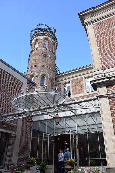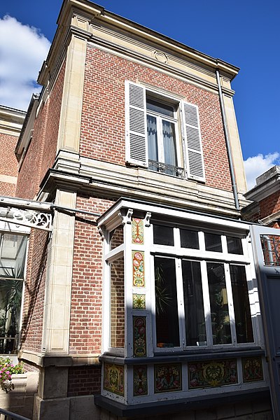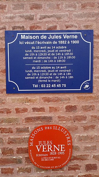 La Maison Jules Verne, située au 2 rue Charles-Dubois à Amiens, est la demeure où Jules Verne et sa famille s'installent en octobre 1882 et qu'il occupe jusqu'en 1900 (quelques sources indiquent 1901). Cette vaste maison, aujourd'hui musée, évoque la vie, l'œuvre et l'engagement public de l'écrivain, qui y composa plus de trente romans et vécut à Amiens pendant plus de trente ans. Construite entre 1845 et 1854 pour le notaire Jean-Baptiste-Gustave Riquier, elle appartient au courant architectural du Second Empire et se distingue par l'ampleur de ses proportions au cœur du quartier résidentiel d'Henriville, riche en hôtels particuliers du XIXe siècle. L'édifice en briques rouges est enduit en rose sur la rue et présente des joints clairs sur la cour; les linteaux, corniches et appuis de fenêtres sont en pierre calcaire. Implantée à l'angle de la rue Charles-Dubois et du boulevard Jules-Verne, la maison comprend un rez-de-chaussée, deux étages et un étage sous comble ; un cordon de pierre horizontal souligne chaque niveau, plus marqué et doublé sous le premier étage. L'angle est à pan coupé et percé d'une série d'ouvertures plus décorées, dont la dernière est surmontée d'un fronton; le même décor se retrouve au milieu de la façade sur le boulevard, ponctué par deux lucarnes décorées au toit. La façade sur cour est plus simple, tandis qu'une tourelle cylindrique en brique, à l'angle sud-ouest, s'élève au-dessus du corps principal ; elle desservait primitivement l'ensemble des étages par un escalier en colimaçon, ses ouvertures romanes en arc en plein cintre reposant sur la pierre et la couronnant d'une plate-forme à balustrade. À l'intérieur, les décors reflètent les goûts éclectiques de la fin du XIXe siècle : la salle à manger présente un style néo-flamboyant, le grand salon un style néo-Louis XVI, et d'autres pièces reproduisent des imitations gothiques, Empire ou Directoire ; seules la salle à manger et le grand salon ont conservé leur décoration d'origine. Le premier étage était réservé aux chambres, accessibles depuis la tourelle, et le cabinet de travail de l'écrivain se trouvait au second étage, à l'angle du bâtiment. En 1945, l'immeuble fut acquis par la société des pétroles B.P., qui le modernisa ; néanmoins, la décoration du rez-de-chaussée fut préservée et divers éléments, notamment des vitraux démontés cette année-là et certaines pièces de mobilier, purent être sauvés. La ville d'Amiens achète la maison en 1980 et l'ouvre au public, le Centre de documentation Jules Verne en assurant la gestion et l'accueil des collections ; en 2000 la municipalité acquiert une collection de 30 000 pièces rassemblées par le collectionneur Piero Gondolo della Riva et le Centre international Jules-Verne développe la maison de 2000 à 2010. Fermée pour restauration le 31 mars 2005, la maison rouvre ses portes le 28 mars 2006 ; depuis 2011, elle est administrée par les Bibliothèques d'Amiens Métropole et reçoit la même année le label « Maisons des Illustres ». Sur quatre niveaux, le musée présente, à partir d'objets ayant appartenu à Jules Verne ou datant de son époque, l'atmosphère d'une demeure bourgeoise de la fin du XIXe siècle et retrace la vie de la ville grâce à photographies, affiches et écrits de l'auteur.