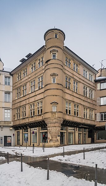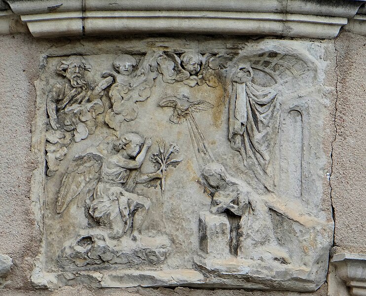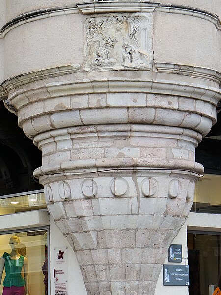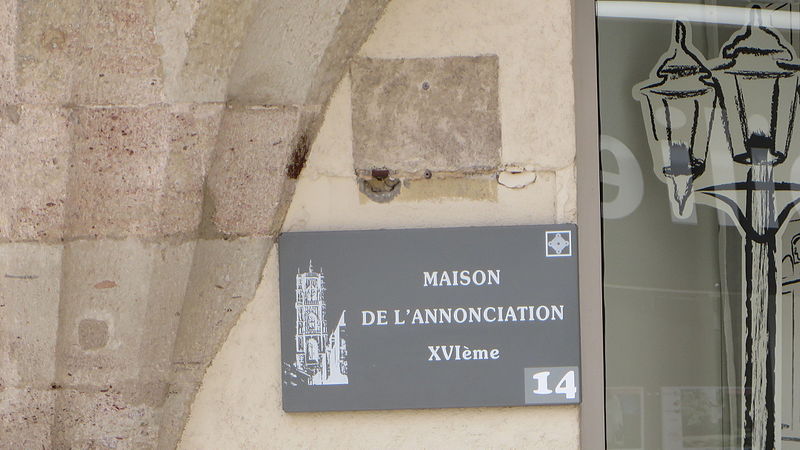 La maison Renaissance dite de l'Annonciation présente deux façades sur la place, organisées en trois étages superposés et prolongées à l'angle par une tourelle en poivrière percée d'ouvertures à fronton et appuyée, à sa base, sur un cul-de-lampe cannelé. Les étages sont séparés par une triple corniche et percés de doubles fenêtres à meneaux en bois, ornées de moulurations de type Renaissance avec des pilastres dont les chapiteaux évoluent du dorique au ionique, puis au corinthien au troisième étage. Entre le cul-de-lampe et la première fenêtre de la tour, une sculpture en pierre représente l'Annonciation, qui a donné son nom à la maison. L'édifice résulte au milieu du XVIe siècle du rassemblement parcellaire de trois maisons à pan de bois, probablement antérieures, comme le suggèrent la forme des abouts de solives. Cette opération d'édification est attribuée à François Dardenne, apparenté à Jean-Imbert Dardenne, déjà lié à d'autres constructions locales. François apparaît dans les sources comme propriétaire à partir de 1551 et transmet la demeure par testament en mai 1555 à son neveu Johan Dardenne. Le programme de construction, ambitieux par son emprise au sol et ses sept niveaux, a été réalisé très rapidement, en au plus quatre ans. Il est possible que Johan ait complété le projet après 1555, notamment pour la tour d'angle dont les frontons triangulaires et le bas-relief de l'Annonciation témoignent d'un langage plus classique que celui des façades sculptées. Dans le cadastre napoléonien, la maison apparaît globalement telle qu'elle est aujourd'hui, si l'on excepte le percement ultérieur de la rue Eugène Viala et la présence probable de constructions adossées au rez-de-chaussée de l'élévation sud. À cette époque, le propriétaire est le magistrat Jean-André Boisse, dont le nom reste attaché à la demeure, également appelée maison Boisse.
