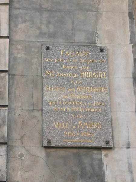 La maison de l'Atlante, dite aussi maison du Samson, est un monument historique situé rue Jules-Lardière à Amiens. Il s'agit en réalité d'une façade du XVIIIe siècle posée sur un édifice de 1,5 m de profondeur, construit à cet effet contre une maison Art déco à l'angle des rues des Cordeliers et Jules-Lardière. À l'intérieur, seul un escalier dessert les ouvertures. Charles Miné, riche négociant amiénois, fit construire une maison en 1760 rue des Sergents et confia la réalisation de la façade à l'architecte Pierre-Joseph Christophle. Numérotée initialement 4 778 selon l'ordonnance militaire du 1er mars 1768, elle porta à partir de 1804 le n° 57 de la rue des Sergents. Au début du XXe siècle, le propriétaire mourut sans héritier; son voisin Anatole Hubault racheta la maison en 1913 pour agrandir la sienne. Après négociations, Hubault fit don de la façade à la Société des antiquaires de Picardie, qui la démonta et la replaça rue Jules-Lardière le 10 mars 1914, puis l'offrit à la municipalité en 1916. Elle fut inscrite au titre des monuments historiques par arrêté du 18 mai 1926. Réalisée entièrement en calcaire en 1761, la façade s'élève sur quatre niveaux. Le rez-de-chaussée présente une porte cochère à droite et deux fenêtres munies de grilles au-dessus de soupiraux murés; les deux étages comprennent chacun trois fenêtres. Le toit en ardoise est percé de trois chiens-assis, un rectangulaire encadré de deux œil-de-bœuf. Au centre du premier étage, l'atlante sculpté par Jean-Baptiste Dupuis, beau-père de Christophle, porte une peau de lion et soutient de ses mains le balcon semi-ovale, se mordant les lèvres sous l'effort. Le balcon du second étage est rectiligne et chaque ouverture des deux étages est ornée de garde-corps en fer forgé. En 2000, François Vasselle restaura la façade et Michel Vion rénova le bras et le visage de l'atlante; un moulage du visage est conservé au Musée de Picardie.