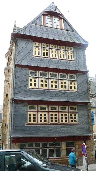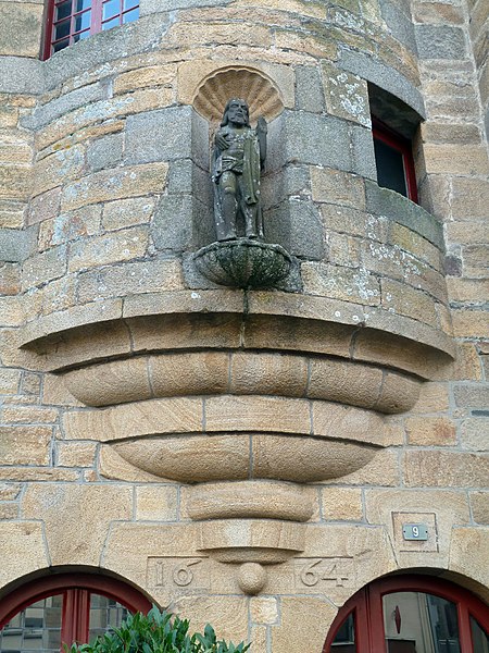 Construite en 1664, la maison présente deux façades distinctes : l'une en pierre, l'autre en pan de bois à encorbellements, et elle est dotée d'une tourelle d'escalier. Au rez-de-chaussée, les transformations de la façade ont respecté les appuis de l'ancienne baie. L'édifice illustre le type de construction bourgeoise du XVIIe siècle en ville.
