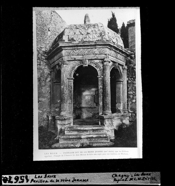 Le Pavillon de la Reine Jeanne, dit aussi Pavillon Mistral, est un petit temple de style arts décoratifs - Renaissance situé au lieu-dit Le Vallon, aux Baux-de-Provence (Bouches-du-Rhône). Il a été érigé au XVIe siècle par la baronne Jeanne de Quiqueran, épouse d'Honoré des Martins (1567-1582), baron des Baux de 1568 à 1581. L'édifice se trouve au fond d'un jardin d'ornement appartenant à la famille des Baux, le « vallon de la Fontaine », orné de cyprès et proche de l'ancien lavoir aux portes des Baux-de-Provence. Le pavillon est classé au titre des monuments historiques depuis le 25 novembre 1905. Le monument et son jardin sont aujourd'hui totalement délabrés et abandonnés depuis plusieurs années ; les photographies anciennes ne reflètent pas l'état actuel. En 1906, l'écrivain Frédéric Mistral fit construire une réplique destinée à son tombeau, où il repose depuis 1914 au cimetière de Maillane. Compte tenu de l'état d'abandon de l'original, cette reproduction risque de rester, en Provence, le seul témoin de l'édifice. À la fin des années 1920, Gustave Trasenster, industriel originaire du hameau de Desnié (commune actuelle de Theux), beau-fils du banquier Ernest Nagelmackers et directeur général de la Société anonyme d'Ougrée-Marihaye, fit ériger une réplique identique pour servir de tombeau familial ; il y repose depuis 1931. Ces répliques se trouvent respectivement au cimetière de Maillane pour Frédéric Mistral et au cimetière de Desnié pour la famille Trasenster.