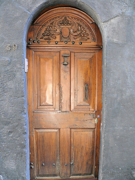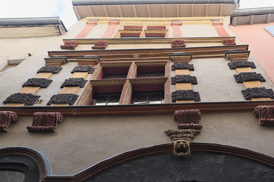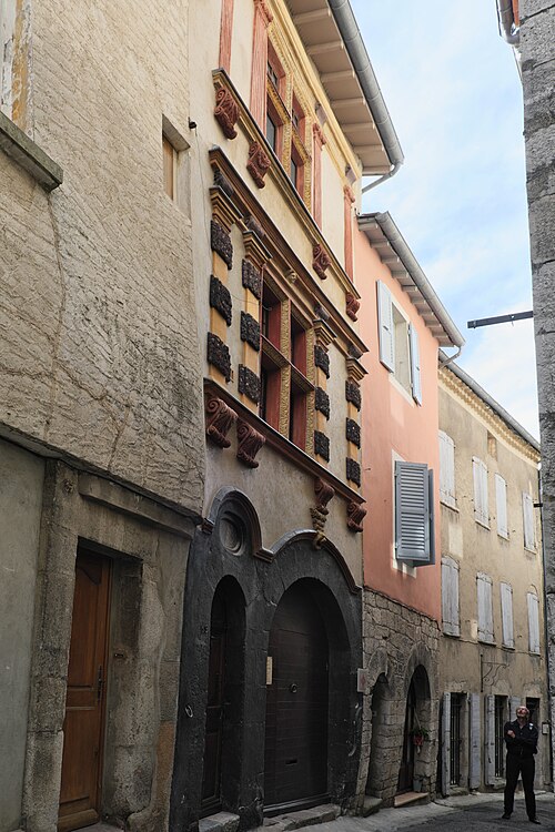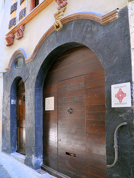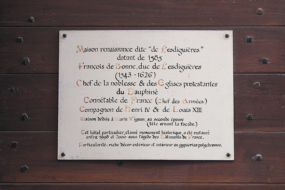 La maison dite de Lesdiguières, que la tradition identifie comme la demeure du chef protestant Lesdiguières, est construite sur un parcellaire étroit. Elle présente une pièce sur rue par étage, les niveaux étant desservis par un escalier tournant éclairé par un puits de lumière et accessible depuis la rue principale par un vestibule. Le gros-œuvre, en maçonnerie de pierres calcaires, est enduit et orné d'un riche décor de gypserie. Une datation dendrochronologique situe l'abattage des bois en 1587. La façade a été remaniée vers 1926-1927 puis restaurée en 1986.
