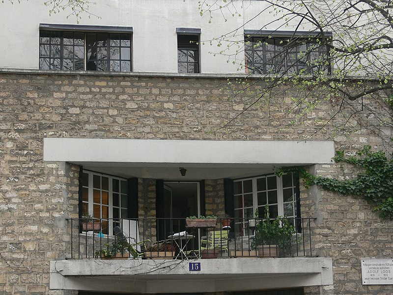 La maison de Tristan Tzara se trouve au 15, avenue Junot, dans le 18e arrondissement de Paris. Elle a été construite en 1926 par l'architecte autrichien Adolf Loos pour l'écrivain Tristan Tzara et sa femme, la peintre Greta Knutson, et constitue la seule réalisation de Loos en France. Le bâtiment se présente comme un simple volume parallélépipédique qui tire parti de la dénivellation du terrain. Sa façade, sobre et dépouillée, illustre le refus des ornements superflus prôné par l'architecte. L'entrée du garage est intégrée au rez-de-chaussée donnant sur l'avenue Junot. La construction a toutefois subi un écrêtement qui l'éloigne du plan initial imaginé par Loos. De la décoration intérieure, il ne subsiste que la cheminée de la salle de séjour. La maison a été inscrite au titre des monuments historiques par l'arrêté du 15 janvier 1975 pour ses façades et sa couverture.