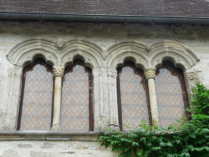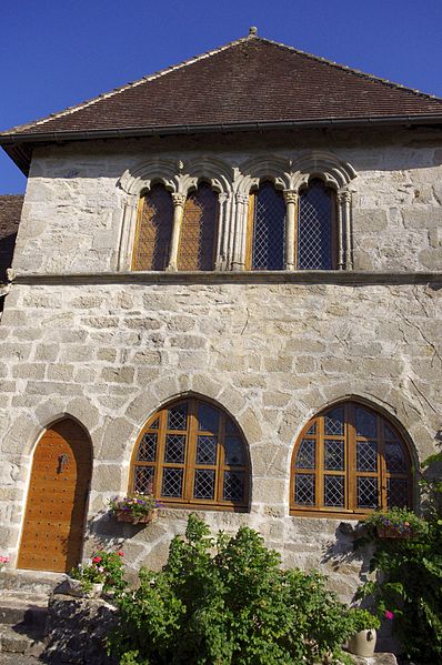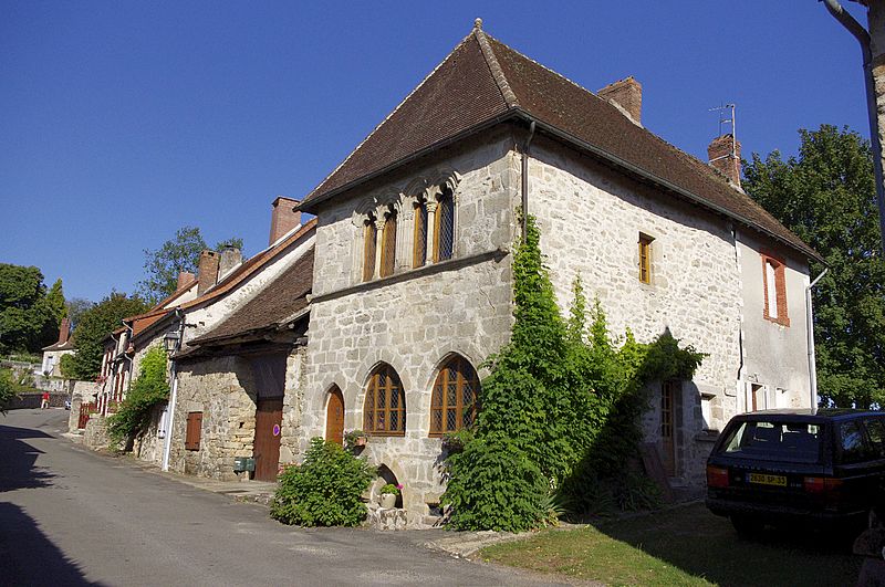 La maison dite des Anglais, située au Chalard (Haute-Vienne), est une construction du XIIIe siècle. Sa façade sur rue illustre un type de maison de petit commerçant médiéval, avec un accès direct depuis la rue à la cave destiné à l’entreposage des marchandises et un rez-de-chaussée doté de baies moulurées. L’étage est percé de baies géminées, soulignées par deux masques marquant la rupture des arcs. L’intérieur du rez-de-chaussée présente de nombreux arcs en pierre de taille. Il s’agit de la seule demeure ancienne du bourg n’ayant pas subi de transformation majeure et qui a conservé ses baies gothiques. La façade sur rue est inscrite au titre des monuments historiques le 7 janvier 1987. Les photographies montrent la façade, la porte, les fenêtres géminées de l’étage et le décor qui les surmonte.