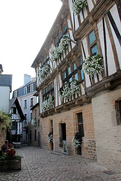 La façade à pans de bois se compose d'un grand corps et d'une partie en saillie. Au rez-de-chaussée du grand corps, une porte centrale est surmontée d'un arc en accolade mouluré. Les étages sont en encorbellement, leurs corbeaux reposant sur des culs-de-lampe en bois sculptés. Une tourelle d'escalier, au sud‑ouest, est soutenue par un contrefort. L'intérieur conserve des boiseries de style Louis XV au premier étage.