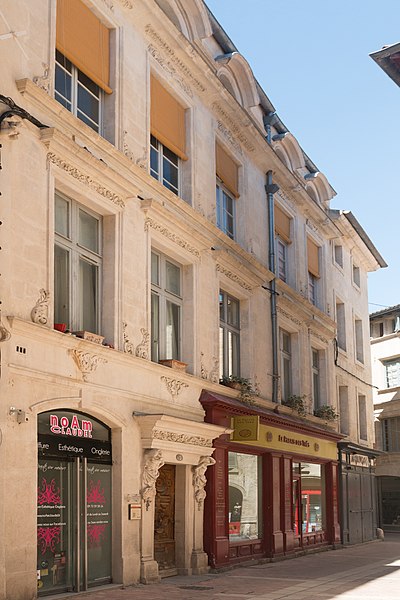 La Maison des Atlantes, dite aussi Hôtel Martin, est un édifice civil situé 2 plan de l'Aspic à Nîmes (Gard, Languedoc-Roussillon). Considéré comme l'un des plus beaux exemples d'architecture civile nîmoise de l'époque de Louis XIV, il est inscrit au titre des monuments historiques depuis 2000. L'immeuble a été reconstruit entre 1676 et 1678 à l'instigation du marchand de soie Jean Martin par les architectes Pierre Cournon et Jacques Cubizol. À la fin du XVIIIe siècle, ou peut-être au tout début du XIXe siècle, deux travées ont été ajoutées à l'est, réalisées à l'identique de celles édifiées dans la seconde moitié du XVIIe siècle. La porte d'entrée est encadrée par deux atlantes qui supportent une architrave moulurée, une frise à rinceaux de feuilles d'acanthe et une corniche à larmier ; le vantail unique comporte de petits panneaux disposés autour d'un panneau central en forme de médaillon. Des feuilles d'acanthe et des volutes encadrent les fenêtres. Les lucarnes de la toiture sont rondes et bordées d'une ligne de balustres carrés. Dans la cour, un bel escalier à balustres carrés commence par un départ orné d'un lion sculpté.