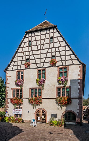L'Ancienne maison des Bains, située au 103 rue du Général-de-Gaulle à Kaysersberg (Haut-Rhin), est classée au titre des monuments historiques depuis 1921. L'édifice, connu aussi sous les noms d'ancienne hostellerie ou auberge du Pont et de Badhus, a été reconstruit pour la ville en 1600 à l'emplacement d'un ancien bâtiment municipal. La reconstruction est attribuée à Jean (Johann) Vollrath, inspecteur des bâtiments, tandis que les parties en charpente furent réalisées par Wilhelm Korne ; les initiales W K et la date 1600 se lisent sur le chambranle en bois sculpté d'une porte intérieure. Jusqu'à la Révolution, le bâtiment abrita l'auberge du Pont et, à intervalles, un office de gourmetage ; l'aubergiste chargé du gourmetage exerçait alors un rôle d'officier municipal et servait d'intermédiaire entre vendeur et acheteur de vin. En 1748 la ville vendit l'édifice à l'aubergiste Fr. J. Huffel, puis, après la Révolution, il fut acquis par le voiturier Joseph Muller qui le conserva jusqu'à sa mort. La municipalité le racheta en 1869 et aménagea en 1872 des bains municipaux au rez-de-chaussée et une salle des fêtes au premier étage, d'où l'appellation de maison des Bains. Les bains fonctionnèrent jusqu'à la fin de la dernière guerre. De premiers projets de restauration datent de 1904 ; des travaux décidés en 1913 furent interrompus par la guerre. La restauration conduite de 1926 à 1929 par l'architecte des monuments historiques Gélis comprit une nouvelle charpente, l'agrandissement vers le nord avec une scène de théâtre, la création d'un escalier en vis et d'un logement de service, ainsi que l'aménagement de la salle des fêtes aux étages. En décembre 1944, les troupes firent sauter l'angle sud-est du bâtiment pour élargir le passage par la rue des Forgerons ; après des réparations immédiates, une importante restauration des façades et du toit eut lieu entre 1953 et 1958. Ce monument fait partie de l'ensemble des monuments historiques de Kaysersberg et du département du Haut-Rhin.