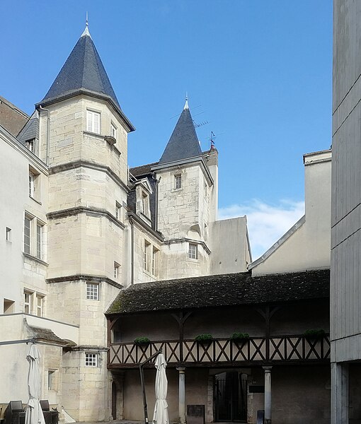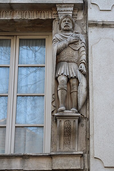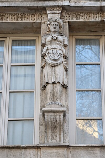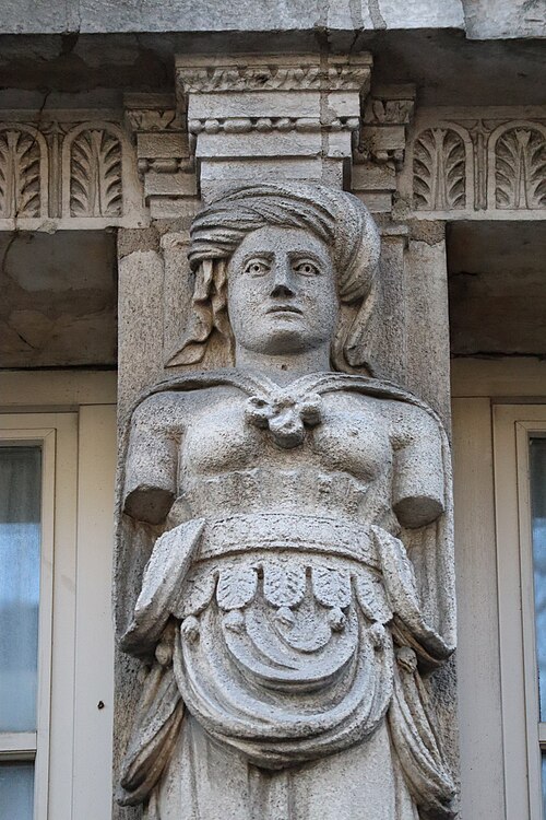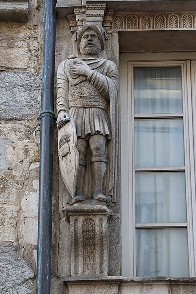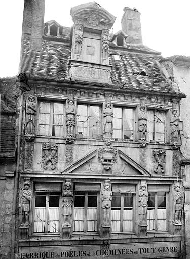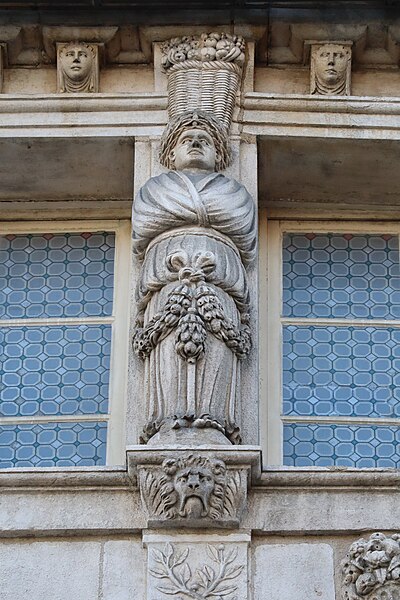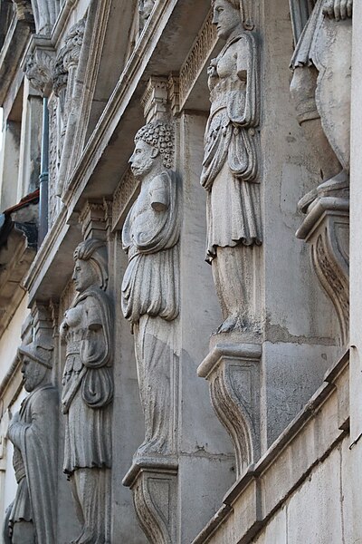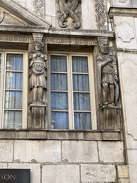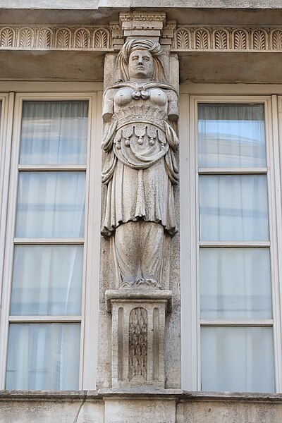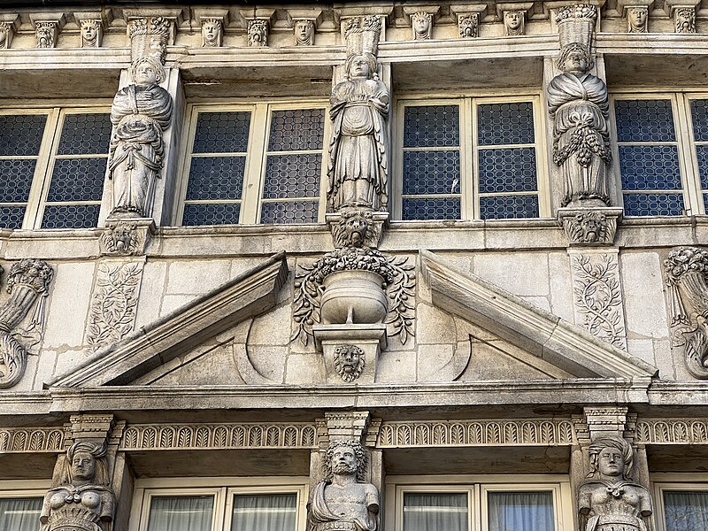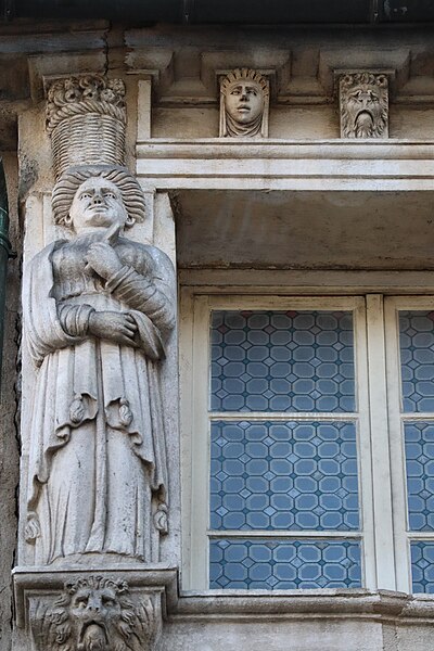 La maison dite des Cariatides, ou maison Pouffier, se situe au n° 28 de la rue Chaudronnerie à Dijon (Côte-d'Or). Elle est classée au titre des monuments historiques par arrêté du 13 juillet 1911. L'hôtel a été construit vers 1603 par l'architecte de la famille Pouffier, famille de riches marchands chaudronniers au début du XVIIe siècle. La façade présente une décoration d'atlantes et de cariatides et porte l'écusson au chaudron fleuri des propriétaires. Ce décor reprend le goût de Hugues Sambin, dont le style était déjà imité par ses successeurs. Les informations principales proviennent du panneau d'information placé devant l'hôtel. Une notice et des photographies sont accessibles sur Wikimedia Commons, et des notices complémentaires figurent dans les bases Mérimée et Structurae. Bibliographie : Eugène Fyot, Hôtels et maisons, p. 141-142, dans Congrès archéologique de France, 91e session, Dijon, 1928 ; Société française d'archéologie, Paris, 1929. Des images documentent la façade, un détail sculptural, la lucarne, la plaque d'information trilingue et les portails, consultables sur les portails municipaux et nationaux.