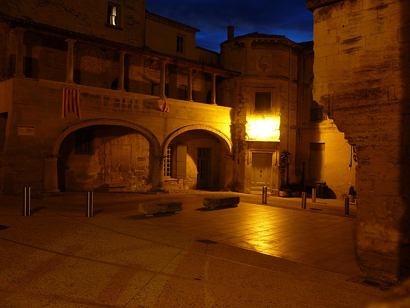 La Maison des Chevaliers, située à l'intérieur des anciens remparts, a été construite au XIIIe siècle. Elle se distingue par une série d'arcades superposées formant une double galerie, unique en Provence. Deux corps de logis perpendiculaires sont desservis par un escalier hors œuvre logé dans une tourelle d'angle. Des caves voûtées subsistent de cette période. À la Renaissance, une double galerie a été édifiée contre la façade est. La maison a été divisée et vendue à partir de 1665 : la partie nord est devenue maison commune ou hôtel de ville, la partie sud a été occupée par des familles et la galerie a servi de halle. La section affectée à l'hôtel de ville a été fortement remaniée entre 1838 et 1843 ; seule la tour d'angle y a été conservée, abritant un escalier en vis. La façade sud donnant sur la rue Pujade a été rhabillée vers 1740 et traitée comme un hôtel classique avec un portail monumental.