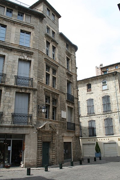 L'édifice, construit au XVIe siècle, occupe un emplacement investi dès 1150 par les Templiers, puis en 1312 par les chevaliers de Saint-Jean de Jérusalem. Ses façades sont percées de fenêtres à meneaux de style Renaissance et ornées de balcons en fer forgé. Des remaniements ultérieurs ont modifié certains aspects de la façade. L'encadrement en pierre de la porte, avec bossages et fronton coupé, date du début du XVIIe siècle ; de la même époque sont également les hautes croisées pourvues de balcons en fer forgé. Le caractère imposant, presque militaire, de l'édifice a valu à la demeure l'appellation de « maison des commandeurs », attribuée sans preuve par l'érudition du début du siècle. Le véritable constructeur de cette résidence aristocratique, édifiée au premier tiers du XVIIe siècle, demeure inconnu.