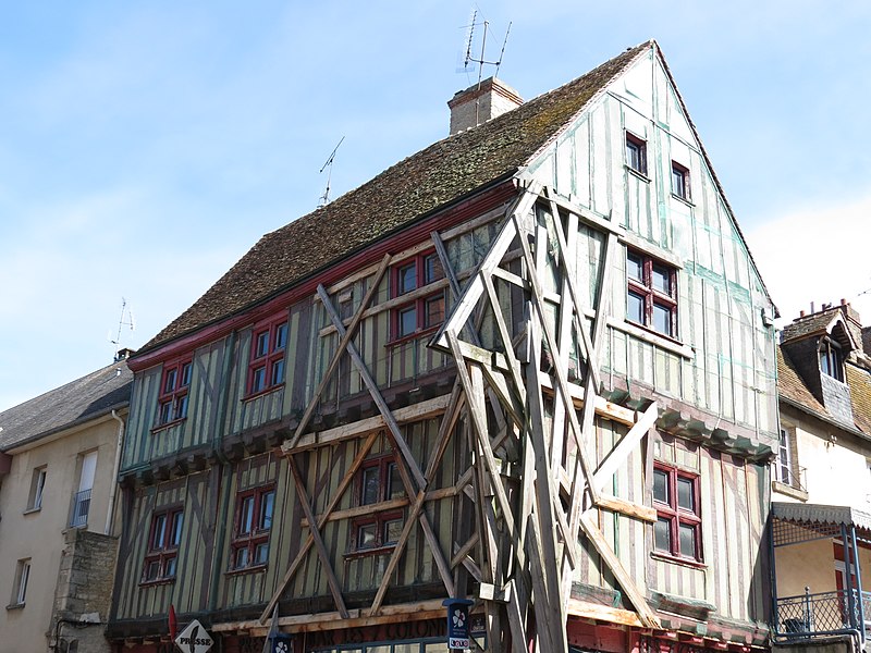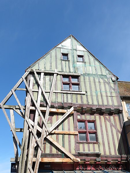 La Maison des Sept Colonnes, située dans le quartier Saint-Léonard d'Alençon (Orne) aux numéros 2-4-6-8 rue du Château et 160 Grande-Rue, repose sur une base médiévale. Sa typologie, notamment des étages carrés en encorbellement sur sommiers et une cave voûtée d'arêtes, suggère une datation à la fin du XVe siècle, voire antérieure. L'aspect actuel pourrait résulter du regroupement de plusieurs édifices antérieurs. Les passages sous les avant-soliers ont sans doute été fermés au XVIIe siècle. L'édifice, à pan de bois et à pignon sur rue, est considéré comme emblématique de l'architecture civile d'Alençon. Vendu à une société civile immobilière en 1990, il a révélé des désordres lors de la tempête de 1999, liés à des travaux des années 1980, et des interventions réalisées avant la vente n'auraient pas été conformes aux règles de l'art. L'immeuble a été étayé en juillet 2004 et vidé des habitants, puis du commerce, en 2014. Inscrite au titre des monuments historiques le 5 mars 2007, la maison a vu la rénovation de sa toiture et de sa façade achevée en septembre 2024, tandis que l'aménagement intérieur se poursuit et que l'immeuble reste en vente. Il est prévu d'y accueillir un commerce et trois logements. Les principales sources documentaires comprennent la base Mérimée, l'étude de Jean-David Desforges et plusieurs articles de presse.