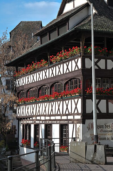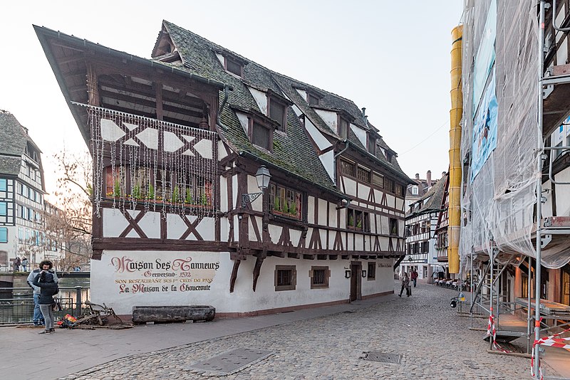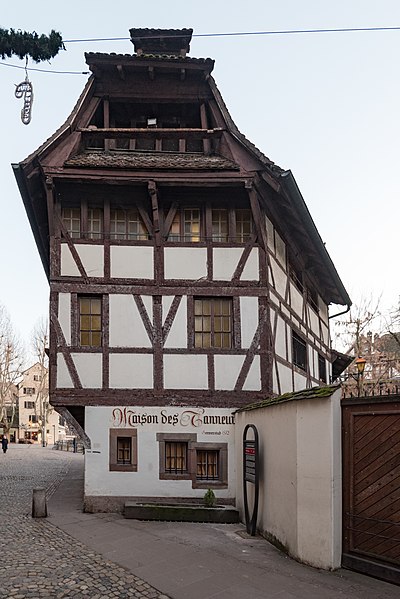 En 1949, un groupement de huit viticulteurs du vignoble d'Alsace a transformé la tannerie en Winstub, dite aussi « Gerwerstubs » ou « Maison de la Choucroute », qui propose des spécialités de la gastronomie alsacienne. Pour approfondir, des ressources et illustrations sont consultables sur Wikimedia Commons et dans la base Mérimée, et des articles traitent notamment de la tannerie du 40 rue du Bain-aux-Plantes, du pont du Faisan, des maisons des 25 et 27 rue du Bain-aux-Plantes, des anciennes glacières, des Ponts couverts, du Barrage Vauban, de l'histoire de Strasbourg et de l'Alsace, ainsi que des listes des monuments historiques du Bas-Rhin et de Strasbourg, de la Grande Île et de la Petite France. Le site www.maison-des-tanneurs.com est également mentionné parmi les liens disponibles. Les références thématiques incluent des portails sur l'architecture et l'urbanisme, la cuisine française, la Renaissance, les monuments historiques et Strasbourg.