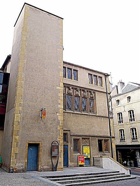 La Maison des Têtes, située rue En Fournirue au centre-ville de Metz, est un édifice de style Renaissance surtout réputé pour les sculptures ornant sa façade. Elle s'inscrit dans le contexte d'enrichissement de la bourgeoisie messine aux XIIIe et XIVe siècles, qui, à la Renaissance, fit construire des immeubles neufs destinés à afficher son succès, aux côtés des hôtels particuliers médiévaux. L'édifice date de cette période prospère et fait l'objet d'une inscription au titre des monuments historiques par arrêté du 3 octobre 1929. Construite en 1529 par l'orfèvre Jean Aubry, la maison est liée à son beau‑père Boissard, que le texte présente comme un précurseur des recherches archéologiques à Metz. Elle doit son nom aux cinq têtes sculptées dans la pierre — trois hommes et deux femmes — dont l'identité reste inconnue, probablement des personnages illustres de l'histoire locale; ces sculptures sont aujourd'hui des copies, les originaux étant exposés en musée (quatre au musée de la Cour d'Or, la cinquième au musée des Beaux‑Arts de Boston). La tourelle d'escalier et le tympan de la porte d'entrée portent un haut‑relief représentant une chasse au lion. Lors du creusement des fondations, Aubry et Boissard mirent au jour des antiquités importantes; plusieurs de ces pièces servirent à la décoration de la cour intérieure de l'hôtel. La rue En Fournirue borde l'emplacement de l'oppidum gaulois Divodurum, lieu sacré puis chef‑lieu des Médiomatrices, et se trouve sur l'axe ancien reliant Reims à Strasbourg, jusqu'à la Porte Seille. Il n'est donc pas surprenant que les abords, correspondant à l'ancienne Décumanus romaine, aient livré un grand nombre de statues, bustes, stèles, dalles et éléments de fortification. Trois siècles après les premières trouvailles, un de leurs successeurs, M. Laporte, fit en 1843 don de ces découvertes à la bibliothèque municipale, à l'exception d'un remarquable bas‑relief gallo‑romain représentant des sauvages luttant contre des lions, que l'orfèvre avait placé au fronton de la porte d'entrée de son hôtel. Les étages conservent des dispositions encore proches de celles des hôtels particuliers des XIIe et XIVe siècles. La façade a été remontée à la suite des travaux du centre Saint‑Jacques; les sculptures originales ont été retirées et sont désormais conservées et présentées en musée.
