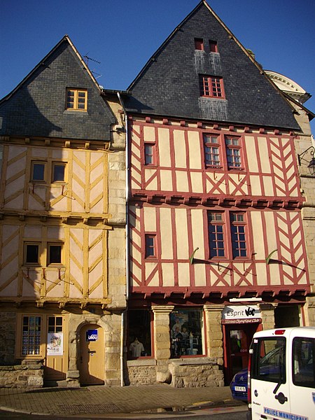 La maison dite des Trois-Piliers, formée de deux maisons contiguës, se trouve au 1 rue Thiers à Vannes (Morbihan). L’ensemble est construit en pans de bois au XVIe siècle et ses colombages ont été repris vers 1635. Ces édifices servaient à la fois d’habitation et de commerces, comme le montre l’étal qui déborde sur la rue entre les trois piliers ayant donné son nom à la maison. Les façades et les toitures sont inscrites au titre des monuments historiques depuis le 15 janvier 1929. Jusqu’en 2008, le bâtiment a abrité les locaux de l’office de tourisme avant son déménagement lié aux travaux de réaménagement du port ; il a ensuite accueilli la boutique du Vannes Olympique Club, puis le siège du Club des plus belles baies du monde en septembre 2014, et est devenu le 1er décembre 2023 la boutique officielle du Rugby Club Vannes. L’édifice se compose de quatre niveaux : un rez-de-chaussée, deux étages en léger encorbellement et des combles. Au rez-de-chaussée, trois piliers de pierre soutiennent une grosse poutre sculptée qui souligne le premier étage ; entre ces piliers s’ouvrent un ancien étal, une autre baie et deux portes. Les deux étages en encorbellement présentent chacun une grande fenêtre centrale ; au-dessus, le pignon est éclairé par une fenêtre carrée et une petite lucarne. La maison voisine, en pierre et bois, présente elle aussi deux étages en léger encorbellement et un pignon sur rue couvert d’ardoise ; son rez-de-chaussée comporte une porte en arc surbaissé et une porte accolée à une fenêtre formant étalage. À l’intérieur, un escalier à vis datant de la fin du XVIe siècle subsiste.