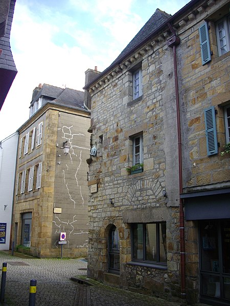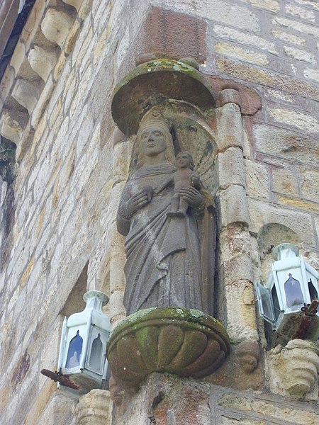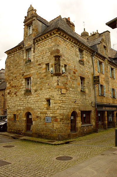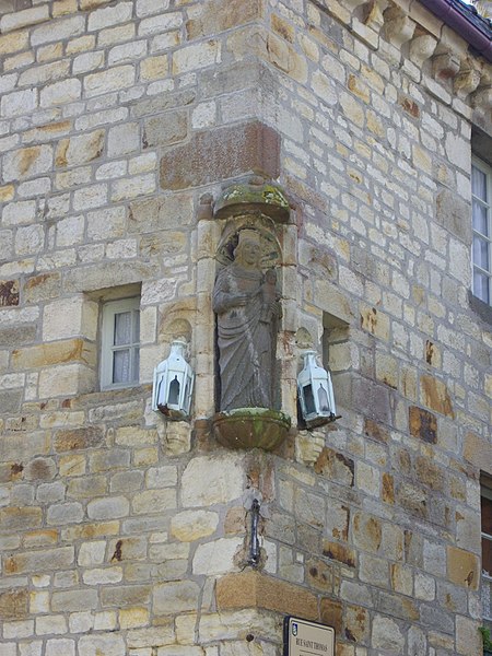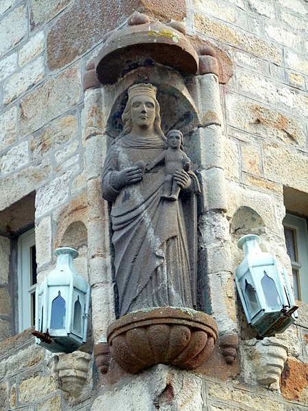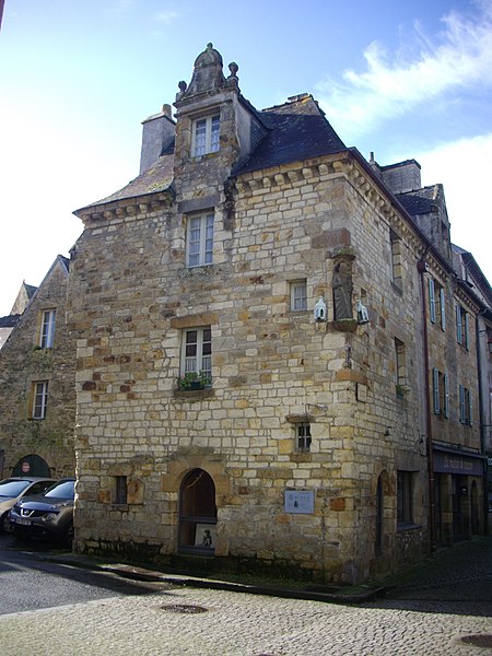 Maison en pierre de taille, pourvue de corniches à modillons et de lucarnes à frontons. À l'angle, une niche datant de la construction abrite une statue de Notre‑Dame qui marque la limite entre les diocèses de Cornouaille et de Léon.