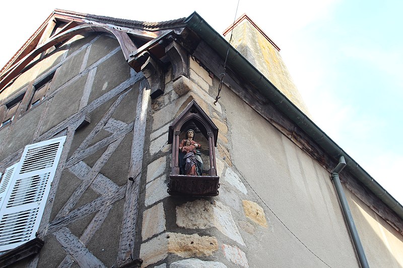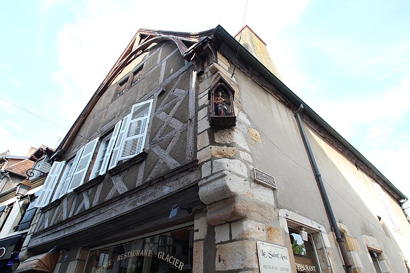 La maison dite de Sainte-Anne, située à Montluçon (Allier), est une demeure de marchands aisés datée du XVe siècle. Elle apparaît au terrier des ducs de Bourbon sous le nom de Pinon Perron, désignant la femme d’Olivier de Beaumanoir, bourgeois et marchand. Le terrier de 1681 la décrit comme « trois maisons jointes ensembles sous un mesme frais », comprenant trois chambres hautes, greniers, deux boutiques et leurs arrière-boutiques, trois celliers et une cave. À cette date, elle est en copropriété entre Nicolas Berthet, marchand apothicaire, les trois fils d’Antoine Preschonnet et de Marie Pelletier, et Guillaume Buglet, praticien en droit. À l’angle de la Grand’rue et de l’actuelle rue Sainte-Anne se trouve depuis longtemps une niche à statue qui a donné son nom à la rue et à la maison. L’édifice, dont les deuxième et troisième niveaux sont en encorbellement, présente deux angles en pierre de taille interrompus par de gros corbeaux, une porte et une devanture. Au premier niveau, ces ouvertures sont surmontées d’une grosse poutre en bois supportant des colombages en X placés sous les trois fenêtres du premier étage ; le troisième niveau offre un colombage rectangulaire. Le pignon est couronné d’un arc ogival reposant sur des doubles corbeaux et inscrit dans le triangle formé par le toit à deux pans et le mur. La façade longitudinale conserve une lucarne à accolade du XVe siècle, une porte avec pilastre et imposte sur le linteau — peut‑être du XVIe siècle — et une fenêtre au chambranle chanfreiné. La maison est partiellement inscrite au titre des monuments historiques par arrêté du 11 mars 1935 ; la façade et la toiture sont protégées.