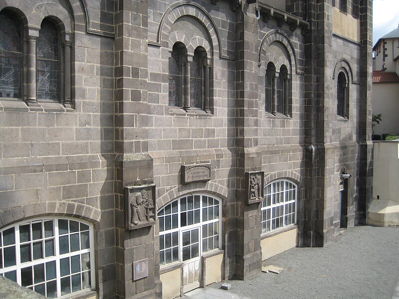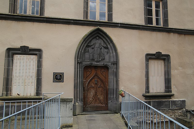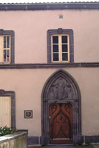 La maison dite "École d'architecture" accueillait la formation des tailleurs de pierre et des métiers liés à la lave. Le pignon présente une triple arcature encastrée dans la maçonnerie, composée de trois linteaux juxtaposés en demi‑cercles surmontés d'une moulure; l'arcature centrale est séparée des deux autres par une colonnette dotée d'une base et d'un chapiteau. L'École départementale d'architecture de Volvic (EDAV) a été créée en 1820 par le comte Gilbert Joseph Gaspard Chabrol‑Volvic. Elle a assuré, en formation initiale et continue, l'enseignement des métiers de la lave : tailleur de pierre, graveur, sculpteur et émailleur sur lave. C'est le seul établissement en France à proposer une formation d'émaillage sur lave sanctionnée par une certification homologuée (RNCP). Installée dans les anciens bâtiments du prieuré clunisien et du presbytère médiévaux, l'école connut des débuts marqués par le manque de locaux, de matériel et de financements. Malgré le soutien initial de Chabrol et l'obtention d'une subvention pour l'équipement, la municipalité se conformait au minimum légal, ce qui provoqua des tensions et conduisit au départ de Chabrol en 1829 et à la démission du premier directeur, Jean‑Baptiste Roger. Après plusieurs remplacements controversés, dont l'incident lié à un instituteur nommé Pacros puis la nomination de François Guillaume en 1832, l'établissement resta en proie à des difficultés financières et pédagogiques. En 1840, face à l'extrême indigence des locaux et du mobilier, Guillaume quitta la direction; l'enseignement reprit ensuite sous la direction d'un jeune normalien, Duranton, et le département prit à sa charge le financement des cours de dessin. La gestion fut ensuite confiée à des congrégations religieuses : les Frères de la Croix (1850‑1855), dont l'action fut critiquée pour la faiblesse des enseignements, puis les Frères de la Doctrine Chrétienne (1855‑1880). Sous ces derniers, l'école bénéficia d'une rénovation des façades et de l'aménagement de nouvelles salles grâce à une subvention préfectorale, avec la création d'un musée et de logements pour le directeur et les frères. Frère Arthème Claude développa une pédagogie dite "École Pratique de Construction" qui permit de relever les effectifs, mais la progression de la laïcisation et les évolutions municipales entraînèrent le départ des frères en 1880. À partir de 1878, l'école d'architecture fut administrativement séparée de l'école communale et placée sous direction laïque; les locaux restèrent néanmoins partagés et insuffisants. Les années qui suivirent connurent des directeurs alternant réformes et défaillances, jusqu'à la nomination en 1894 de Joseph Berthelay, qui restaura l'ordre et la réputation de l'établissement. Berthelay réorganisa l'enseignement théorique et pratique, recréa le poste de professeur de dessin et obtint des inspections régulières, stimulant la progression des effectifs. Sous sa direction l'école participa avec succès à de grandes expositions régionales et nationales et obtint plusieurs récompenses. La Première Guerre mondiale interrompit ces succès mais permit aussi d'orienter des travaux d'élèves vers le thème des monuments aux morts, utile aux industries locales de la pierre. Dans l'entre‑deux‑guerres l'établissement connut une consécration lors de grandes expositions, et Berthelay fut décoré de la Légion d'honneur. La crise économique des années 1930 fragilisa l'école, et à son départ à la retraite en 1936 l'institution était déjà affaiblie. En 1937 la tutelle passa des Beaux‑Arts à l'enseignement technique; après la Seconde Guerre mondiale les effectifs remontèrent et la création d'un CAP de tailleur de pierre en 1950 contribua à la conservation des savoir‑faire. Faute d'embauche industrielle, l'école dut compter sur l'engagement de quelques enseignants pour assurer sa survie. En 1972 l'établissement adopta une structure associative et devint le Centre départemental des arts et traditions des métiers de la pierre, élargissant ses activités aux métiers d'art tout en maintenant des formations autour de la pierre. Les années 1980 virent le retour de formations qualifiantes à temps plein grâce à une augmentation des crédits. En 2009 l'EDAV est devenue l'IMAPEC (Institut des Métiers d'Arts de la Pierre et de la Construction), géré par l'association Traces de pierre, qui conserve la vocation originelle d'enseignement des métiers de la pierre. L'édifice a été classé au titre des monuments historiques en 1908. La maison conserve ainsi une double identité : patrimoine architectural, avec son pignon à arcature, et lieu vivant de transmission des savoirs liés à la pierre et à l'émail sur lave.