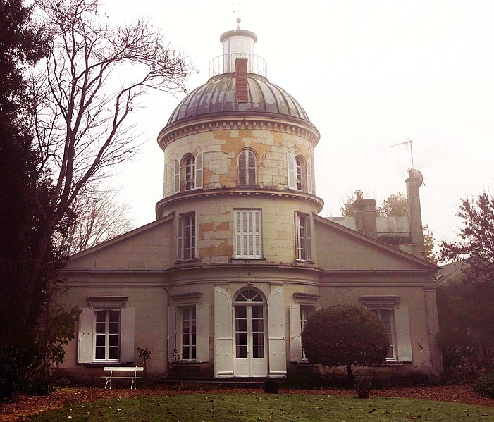 Côté jardin, à l'ouest, une rotonde partiellement engagée dans le pavillon central s'élève sur deux niveaux et se couvre d'un dôme en zinc coiffé d'une fine balustrade en fer forgé qui a donné son nom à la maison ; la rotonde s'ouvre par une porte flanquée de pilastres d'ordre dorique.