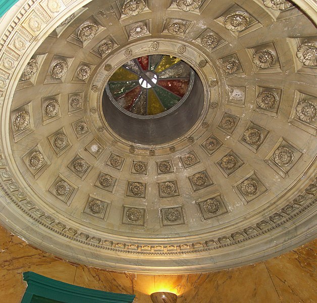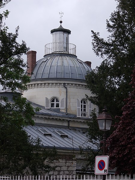 L'aménagement intérieur illustre certaines recherches stylistiques de la Restauration : toutes les pièces sont rondes, ovales ou à angles adoucis et sont ornées de boiseries et de stucs. Un escalier tournant en charpente, muni d'une rampe en fonte et bronze décorée de motifs végétaux, conduit aux étages et au sommet du dôme. La coupole intérieure est divisée en caissons peints ornés de rosaces et percée, au faîte, d'un oculus vitré à douze facettes.