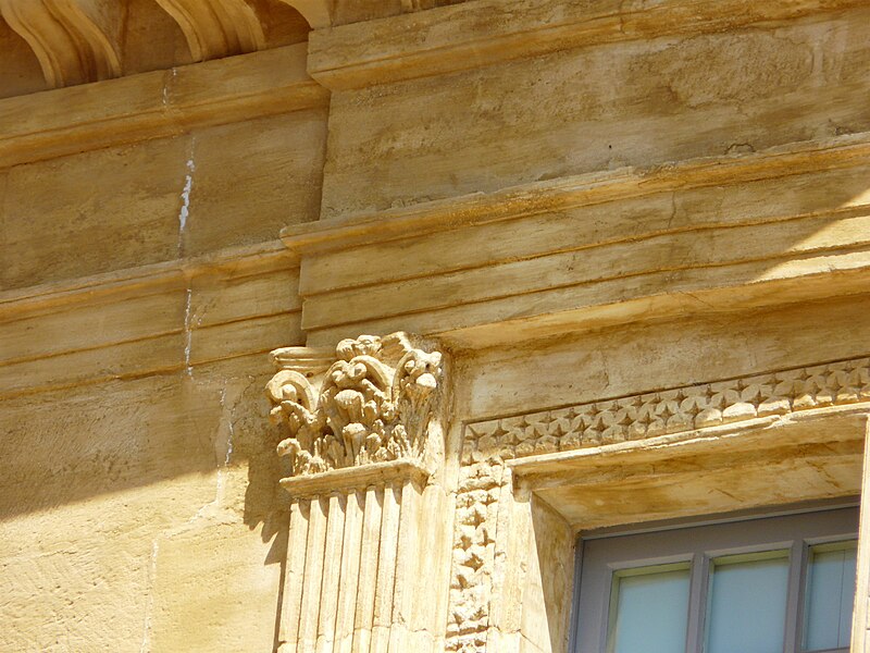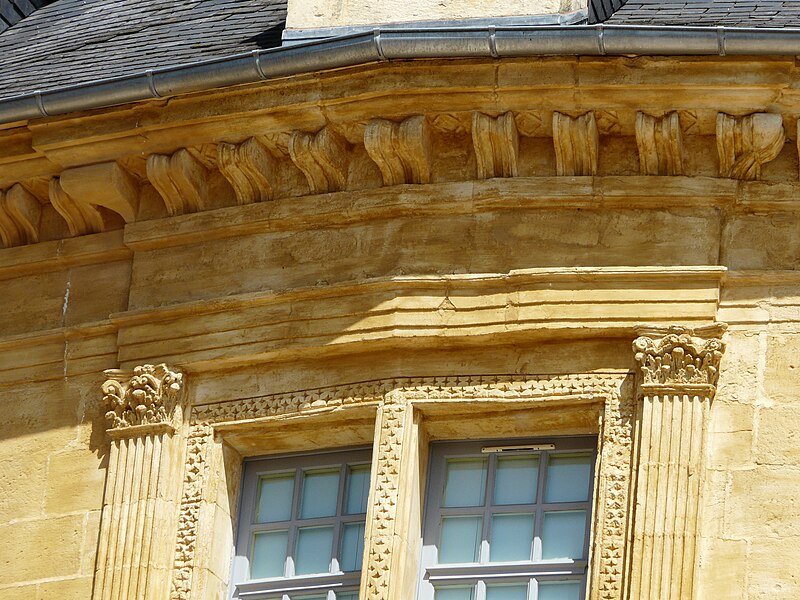 La maison, dont une partie date du XVIe siècle, présente côté cour une tourelle d'escalier. Une porte arrondie donne accès à la cour intérieure. Au deuxième étage, les ouvertures sont séparées par des pilastres plats à chapiteaux corinthiens ; à gauche, deux pilastres cannelés encadrent les deux ouvertures. Une lucarne à fronton entrecoupé, avec coquille, complète l'élévation.